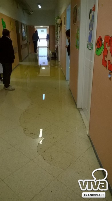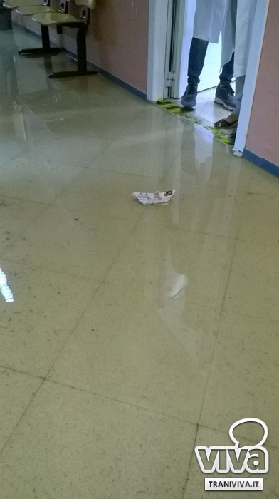 Non solo il sottopasso di via Pozzopiano. La pioggia di questa mattina ha creato disagi anche nel reparto di riabilitazione dell'ospedale di Trani, che si trova al piano terra, alle spalle dell'ingresso principiale. Il personale si è ritrovato in serie difficoltà all'interno dellla struttura per via dell'acqua piovana, che ha raggiunto l'intero corridoio e anche le stanze dove si svolgono le consuete attività con i pazienti diversamente abili. Le attività mediche sono state quindi sospese, in attesa di riuscire a drenare l'acqua negli ambienti.