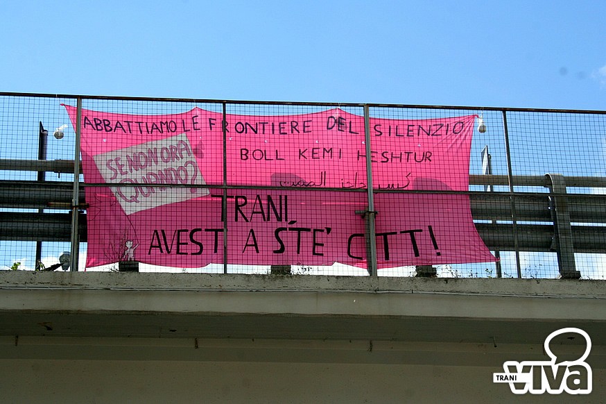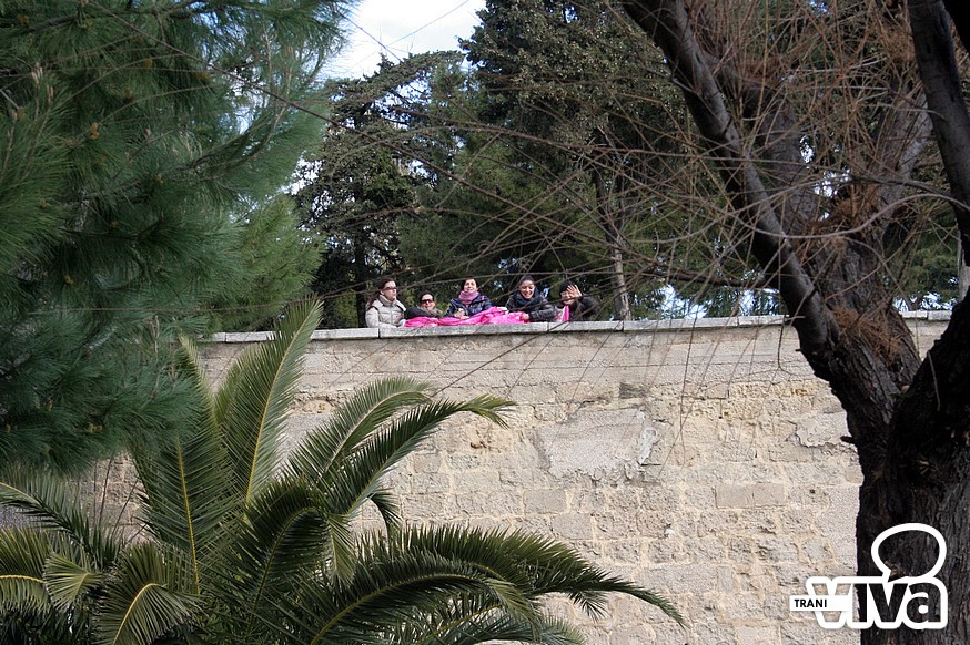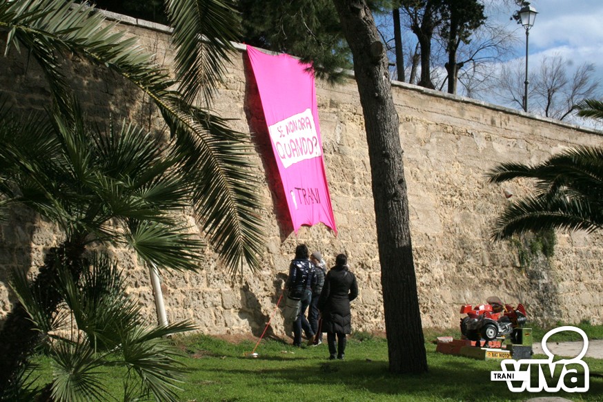 C'è stato stamattina a Trani, in occasione della festa della donna, un flash mob: "Fiocchi rosa per la città", organizzato dal comitato "Se non ora quando" di Trani. Il comitato segue le orme dell'omonimo movimento nazionale nato in occasione della mobilitazione delle donne del 13 febbraio ed è attivo su facebook. Il flash mob è consistito nell'esposizione di due striscioni e nell'apporre dei fiocchi rosa sulle statue della città. Uno striscione con il nome del gruppo è stato fatto calare dal boschetto della villa, dov'è stato presentato il comitato; mentre l'altro era visibile all'altezza del mercato e arrecava le scritte in tranese, arabo e albanese: "Trani, basta stare zitta!".