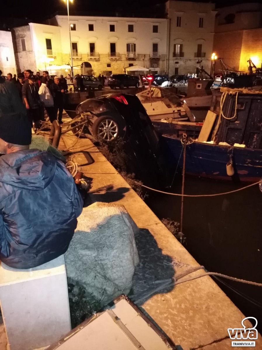 Sembra la scena di un film comico, ma è quanto successo questo pomeriggio, intorno alle 18, lungo il Porto tranese. Un'auto è finita in acqua tra lo stupore dei passanti. Avvicinandosi si sono resi conto che, per fortuna, a bordo non c'era nessuno.