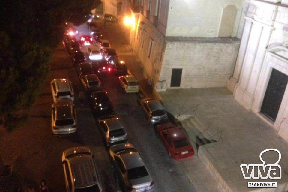 Per la grande festa, l'area della Terra rossa, il parcheggio più grande della zona, è stata interdetta alle auto. I tranesi hanno così deciso di invadere piazza Gradenico, abbandonando i propri mezzi persino sul marciapiede. Tra pullman e parcheggi selvaggi per la piazza sembra non ci sarà pace quest'estate.