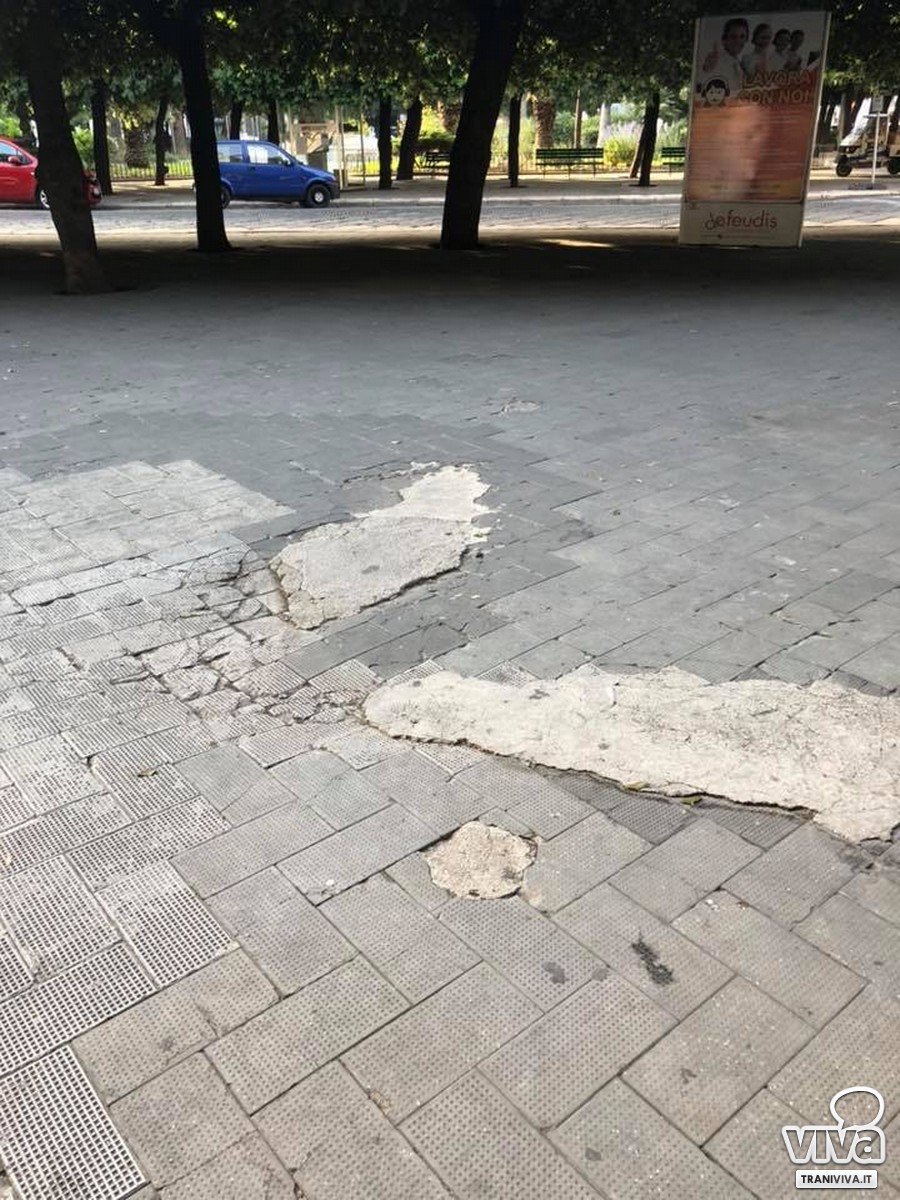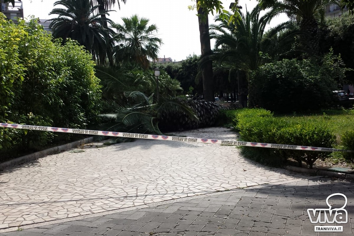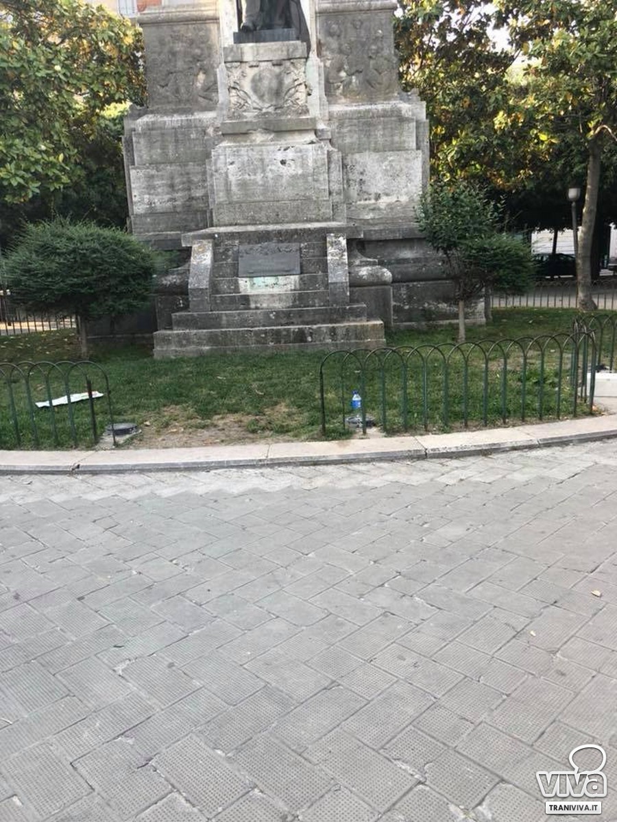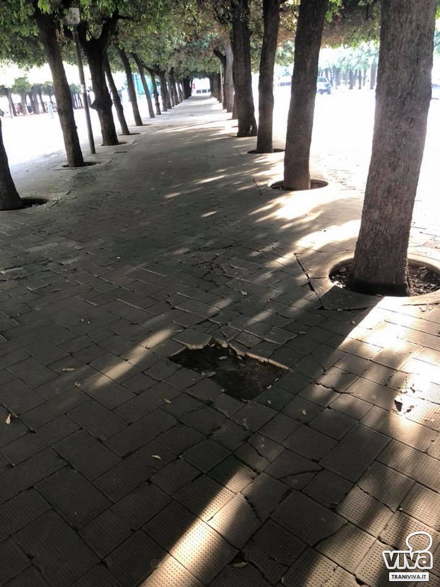 «Sporca, con rami folti che arrivano per terra, secchi e malati in più punti, marciapiedi sconnessi e chi più ne ha più ne metta. Siamo a fine giugno e di potatura neanche l'ombra. E limitiamoci a piazza della Repubblica. Però leggo che il bilancio di questi primi tre anni di amministrazione è buono. Contento solo di essermi trovato con altri solo a pochi secondi dalla caduta. Tutto va bene a Trani».