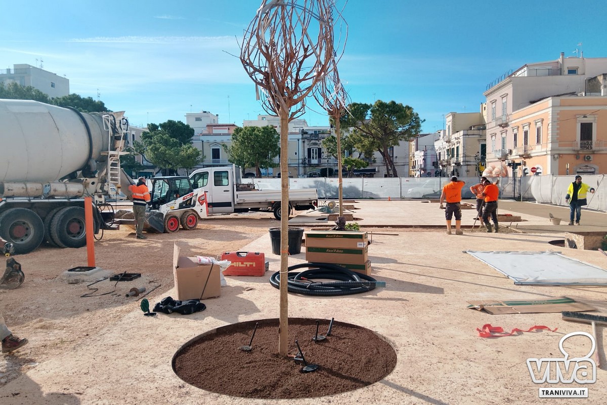 Ferrante: "Segnale di rinascita dopo giorni difficili". L'emozione di Cirillo (ideatore del progetto nel 2018): "Una dedica a mio padre Antonio, che amava questa piazza". Il volto di Piazza Gradenigo (nota ai tranesi come Sant'Agostino) sta per cambiare definitivamente. I lavori di riqualificazione, avviati nell'aprile 2025 e dal valore complessivo di 958 mila euro, sono entrati ufficialmente nella fase finale. Dopo l'approvazione dell'ultima variante a novembre, il cantiere si avvia verso il traguardo: manca solo la posa della pavimentazione drenante e le rifiniture, con l'inaugurazione del primo stralcio prevista per il mese di marzo. Intanto, proprio in queste ore, è iniziata l'operazione più attesa dai residenti: la piantumazione dei nuovi alberi. Si tratta di 24 nuove essenze selezionate specificamente per evitare i problemi strutturali causati in passato dalle radici dei vecchi pini, garantendo così longevità alla nuova pavimentazione e sicurezza ai pedoni.