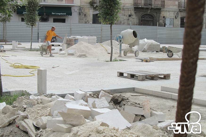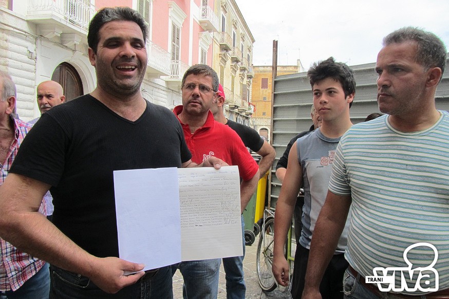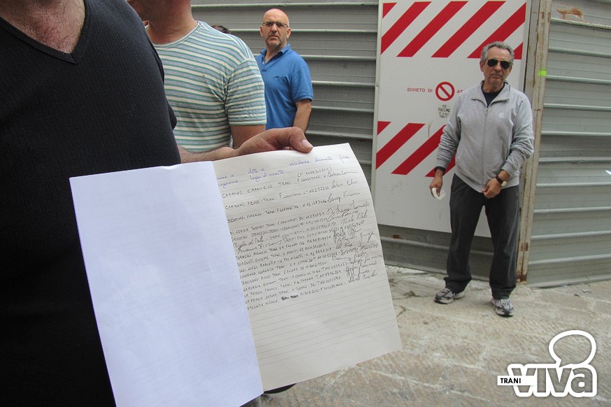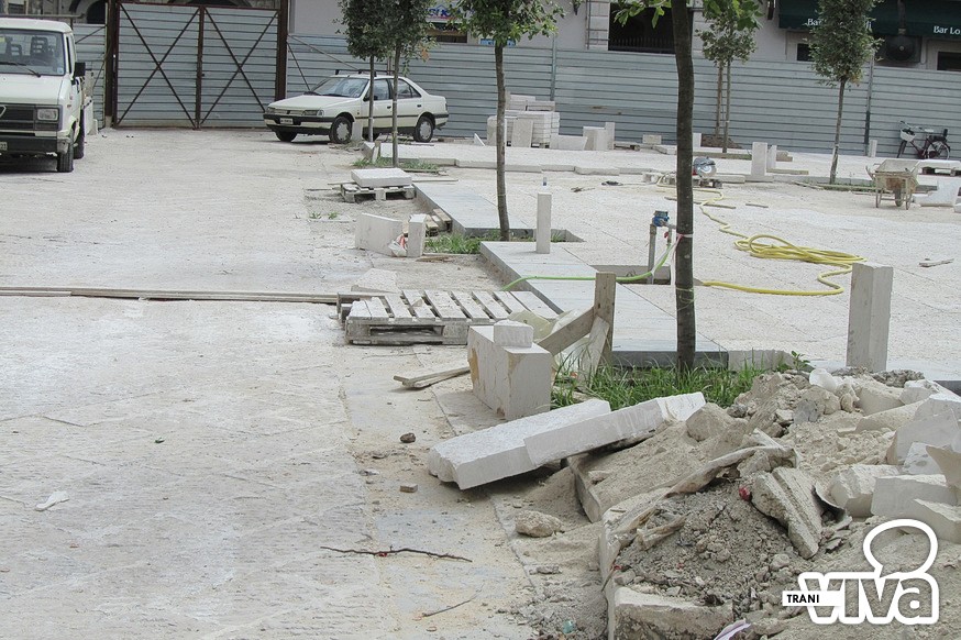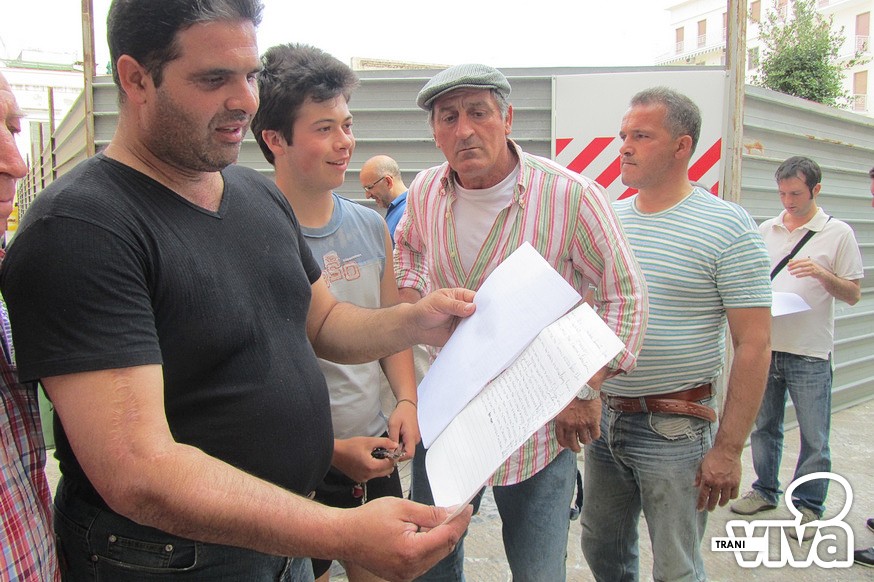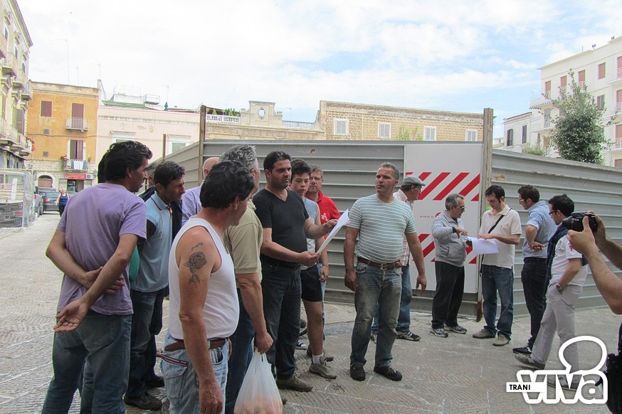Residenti e pescatori di Trani bloccano i lavori sul lato di via Annunziata. Tutti sono imbufaliti per il nuovo look che assumerà la piazza