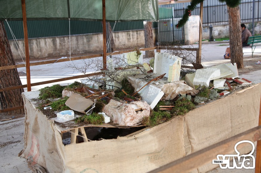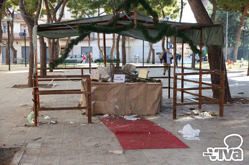 I vandali si sono accaniti sul presepe realizzato presso la pinetina di via Andria dall'associazione Work in progress. Sono spariti dalla natività alcuni personaggi e sono stati completamente distrutti tutti gli edifici che adornavano il presepe. Rubati anche pezzi di materiale elettrico.