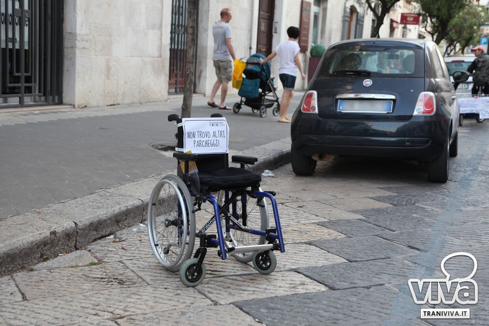 Posteggi auto occupati dalle carrozzine: ieri sera a Trani un flash mob