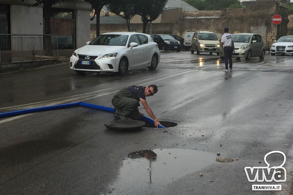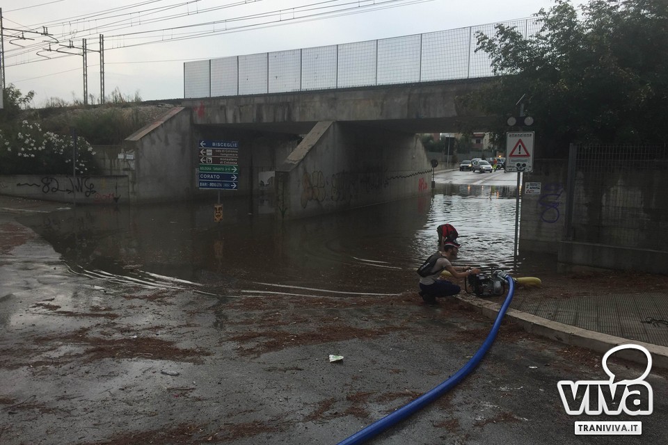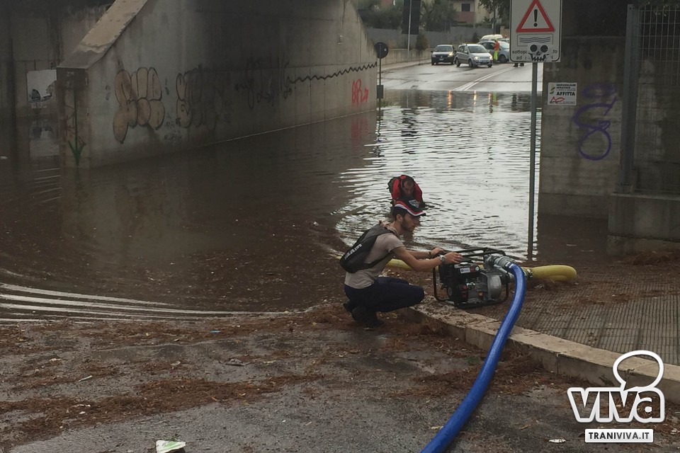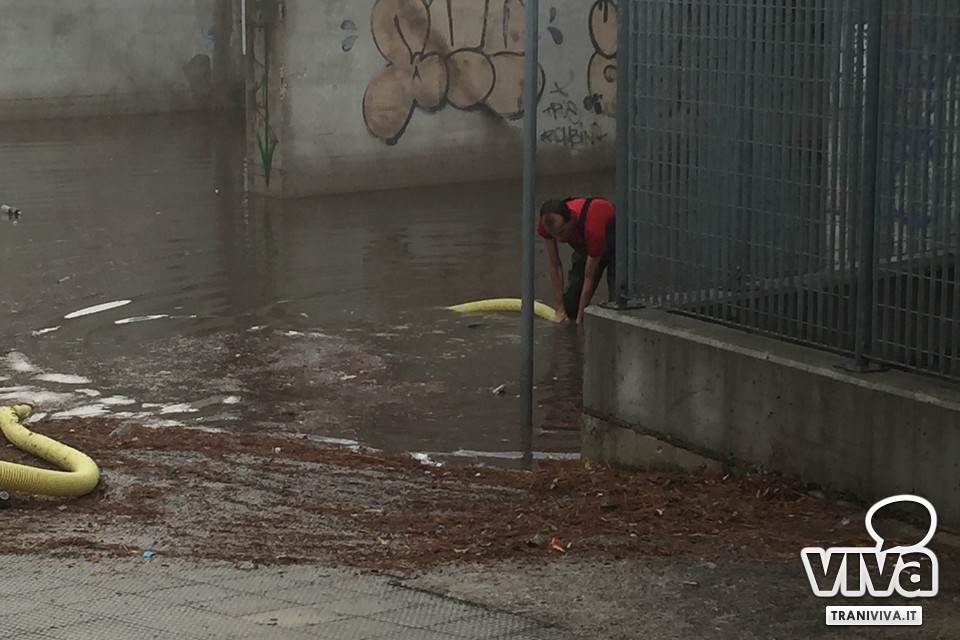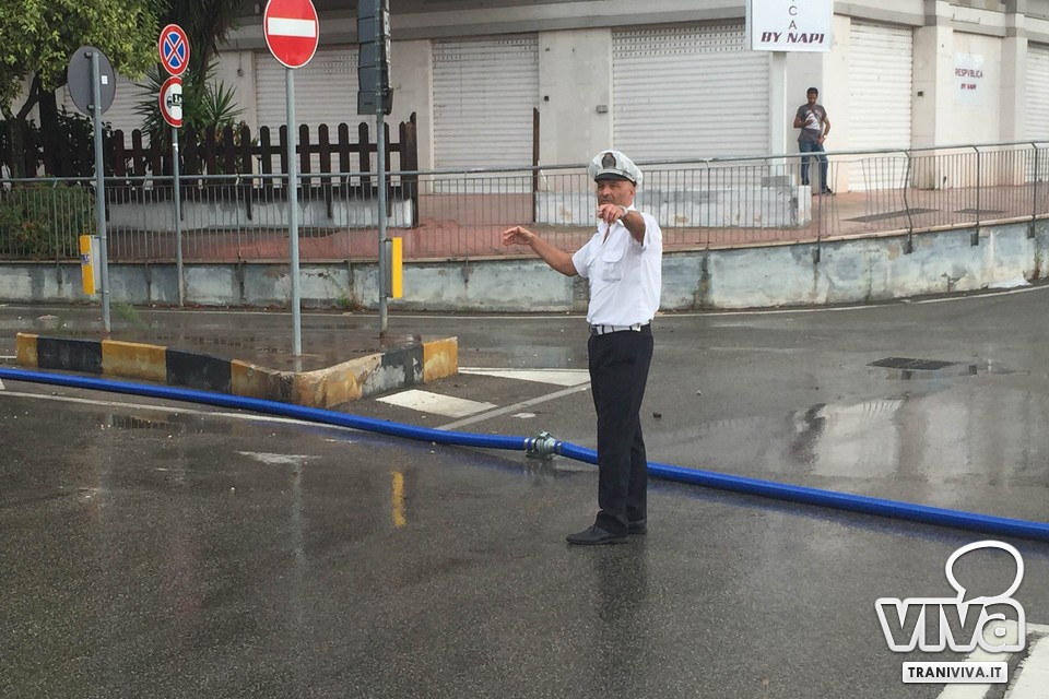 Fondamentale l'intervento degli agenti della Polizia Municipale che hanno bloccato la zona al traffico e rimesso in moto le pompe termoidriche. Sul posto anche gli operatori dell'associazione Trani Soccorso che con le pompe idrovere si sono occupati di espellere l'acqua in eccesso.