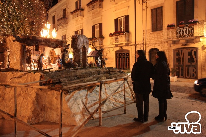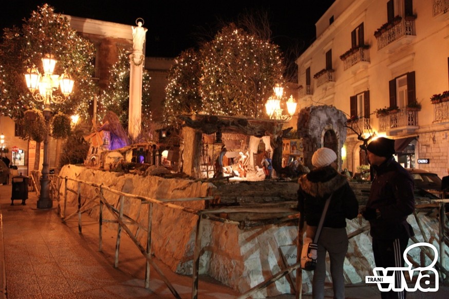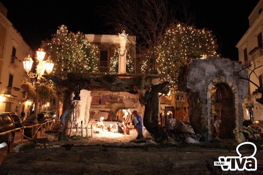 «Un invito alla festa». E' questo il senso del presepe monumentale realizzato in piazza Libertà dall'associazione La Carovana di Trani. A realizzarlo soci dell'associazione e disoccupati, con le firme di Antonio, Francesco e Vincenzo Vallisa, Giuseppe Giangualano e Fabio Loprieno.