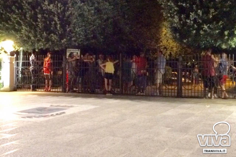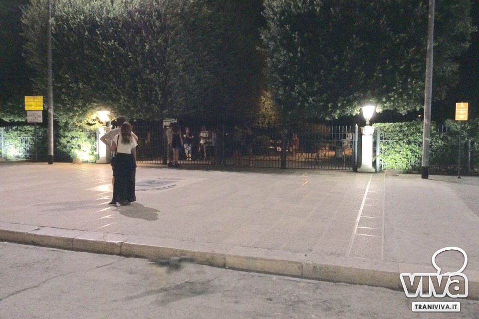 Proprio così, alcuni tranesi, intorno a mezzanotte, dopo aver trascorso la serata al lido Bella Venezia, stanchi, si sono recati verso l'uscita, dove hanno trovato una piacevole sorpresa: il cancello era chiuso. I passanti, curiosi, hanno iniziato a fotografare i "tranesi in gabbia" e a nulla è valso il tentativo di chiamare il custode, ignaro di tutto. Di certo nessuno avrebbe voluto passare un'intera notte all'interno della villa e così "i prigionieri" si sono rivolti al proprietario del lido che ha consentito loro di poter usufruire del loro personale passaggio laterale. Poco tempo dopo, il gruppo era fuori, sano e salvo.