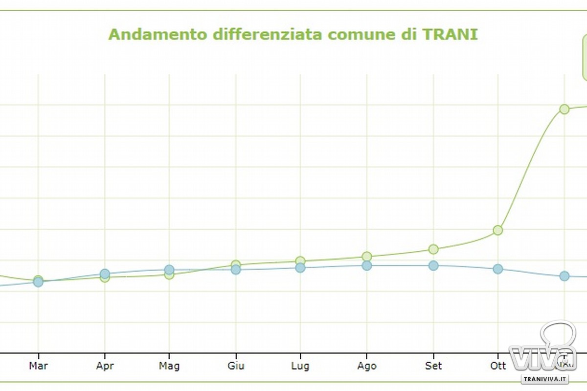 Per il secondo mese consecutivo percentuale record di raccolta differenziata per la città di Trani: dopo il 78,59% di novembre 2020, a dicembre 2020 la percentuale di raccolta differenziata ha registrato un ulteriore incremento raggiungendo il 79,86%. Il sistema di raccolta dei rifiuti promosso dall'amministrazione comunale e da AMIU S.p.A. attualmente in vigore consente a Trani di conquistare percentuali notevolmente superiori rispetto ai mesi precedenti: si è passati dal 24,60% di dicembre 2019 al 79,86% di dicembre 2020. Trani consegue così le percentuali in assoluto più alte tra i comuni capoluoghi pugliesi."La conferma per il secondo mese dei risultati straordinari raggiunti con il porta a porta - sottolinea il sindaco di Trani Avv. Amedeo Bottaro - ci induce a riflettere sulla maturità dimostrata dalla cittadinanza. Va sottolineato e merita un plauso il comportamento virtuoso dei tantissimi cittadini che hanno saputo interpretare il cambiamento rendendosi protagonisti di una bellissima pagina scritta dalla città di Trani nel settore ambientale. Insieme abbiamo ora il compito di consolidare gli obiettivi raggiunti. Numeri alla mano è possibile parlare di una scommessa vinta grazie alla capacità dei cittadini di accogliere l'invito a modificare le abitudini quotidiane differenziando i rifiuti in maniera puntuale".