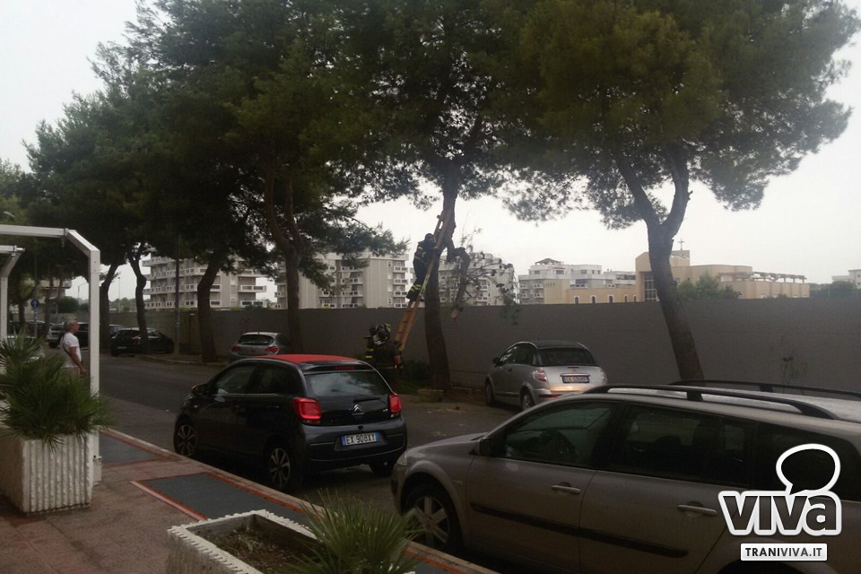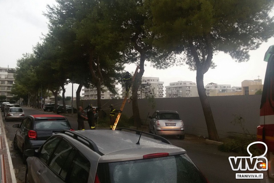 Un ramo di pino di grosse dimensioni si è staccato ed è finito a centro strada. È accaduto questo pomeriggio in via Bari. Il ramo non ha resistito alle forti raffiche di vento e alla pioggia battente e così si è staccato dall'albero cadendo sull'asfalto. Fortunatamente nessun'auto era di passaggio in quel momento scongiurando così danni a cose e persone. Per rimuovere il ramo è stato necessario l'intervento dei vigili del fuoco.