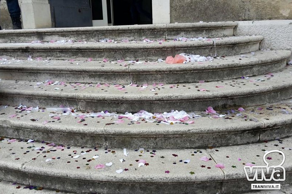 Un matrimonio, un po' di riso, coriandoli e stelle filanti, sono gli "ingredienti" che hanno reso la scalinata dell'ingresso principale di Palazzo di Città scivolosa e quindi pericolosa. E non c'è voluto tanto tempo perché il primo malcapitato prendesse una "clamorosa" caduta.