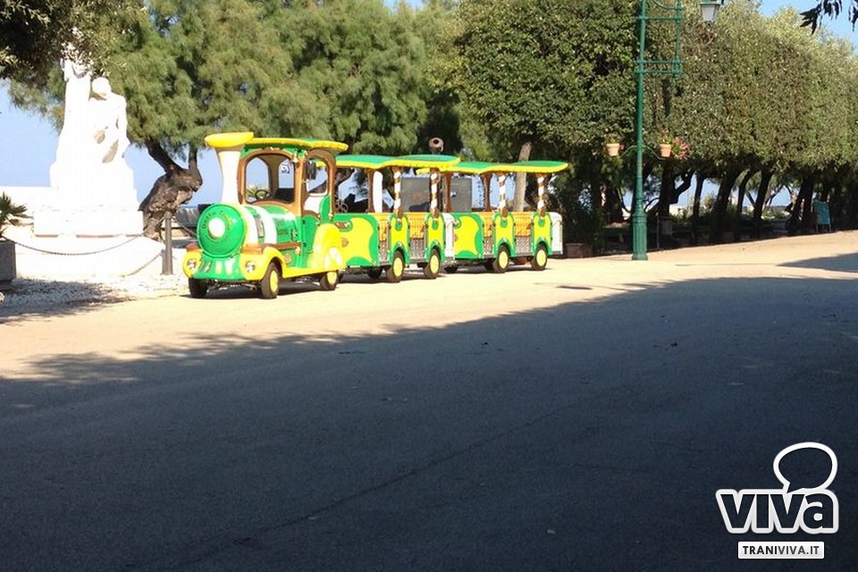 Ritorna a circolare lo storico trenino nella Villa Comunale dopo i divieti degli anni passati. Ma questa volta con una novità: un trenino a zero impatto ambientale. Anche quest'anno responsabile della gestione del mezzo è la famiglia Lestingi. Nuovo nella forma e dai colori sgargianti, il mezzo potrà far divertire bambini e famiglie con i suoi classici giri tra i viali per tutta l'estate, fino a fine agosto. Una notizia che di certo rallegrerà tutti i nostalgici (chi non ha fatto almeno un giro sul trenino da piccolo?) e i turisti che potranno ammirare tutte le bellezze e gli scorci paesaggistici che la nostra Villa offre.