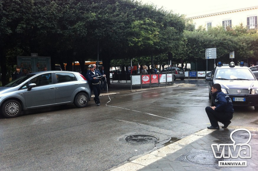 Secondo una prima ricostruzione dell'accaduto, una signora di circa 50/60 anni sarebbe scivolata mentre attraversava la strada, a pochi metri dalle strisce pedonali, all'incrocio tra via Aldo Moro e corso Cavour, sbattendo contro la Fiat Punto che si sarebbe fermata proprio per concederle l'attraversamento. Sul posto sono intervenuti gli agenti di Polizia Locale per gli accertamenti del caso e l'associazione nazionale della Polizia di Stato. La signora è stata trasportata presso l'ospedale di Trani per accertamenti da un'ambulanza del 118.