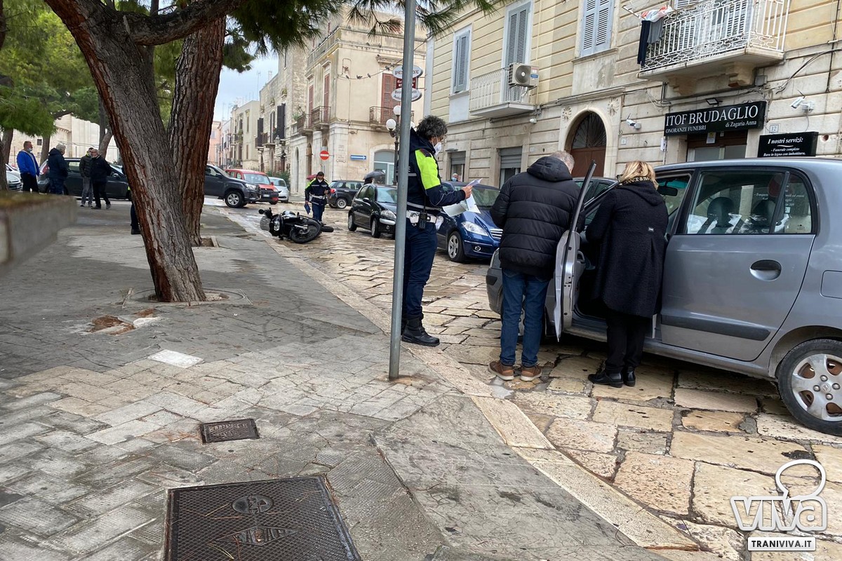 Sicuramente il manto stradale scivoloso a causa della pioggia di queste ore a Trani ha contribuito all'incidente ad un incidente verificatosi poco prima delle 11 in piazza Gradenigo, all'altezza dell'incrocio con Corso Vittorio Emanuele.