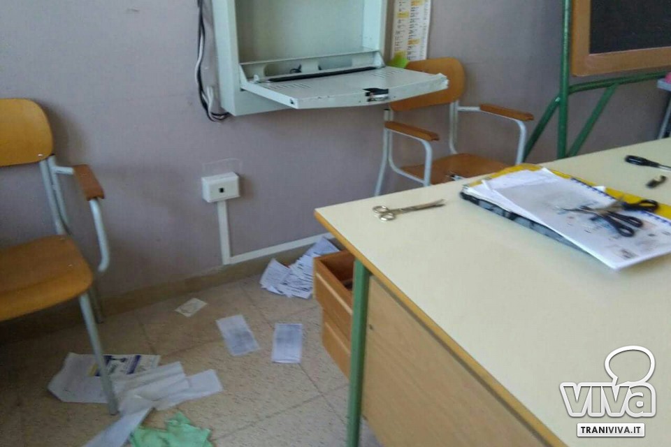 Alla Beltrani, in via Giorgio La Pira, invece, i ladri sono entrati dall'ingresso secondario e hanno rubato 2 computer e forzato le macchinette per bevande e caffè: i ladri si sono portati via tutto l'"incasso". Le scuole sono entrambe aperte, ma almeno le aule della Pertini sono vuote più per lo spavento dei genitori che per ragioni pratiche.