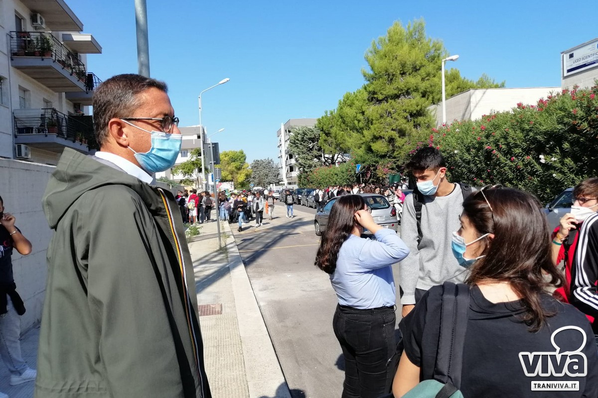 E' iniziata questa mattina al Liceo Scientifico "Vecchi", ed interesserà in questi giorni tutte le scuole superiori della città, la distribuzione di mascherine agli alunni che ne risultino sprovvisti: il sindaco Amedeo Bottaro è personalmente intervenuto all'orario di entrata del liceo tranese, ed insieme alla dirigente scolastica prof. Angela Tannoia hanno esortato gli studenti all'uso della mascherina come strumento importante di prevenzione nell'emergenza Covid.
