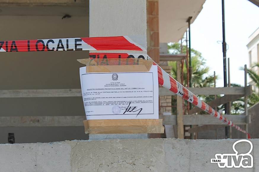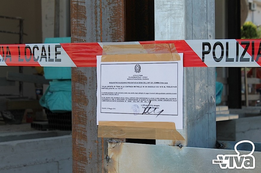 Questa mattina ufficiali ed agenti della polizia locale di Trani e dipendenti dell'ufficio tecnico comunale, coordinati dal comandante di polizia locale, Antonio Modugno, dal dirigente dell'ufficio tecnico, Giuseppe Affatato e dal capitano Michele Ruggiero, hanno posto sotto sequestro giudiziario una villa in costruzione a Trani, nella zona di Matinelle, sulla strada statale 16.