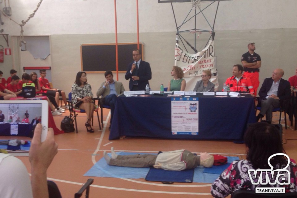 Slogan della giornata è stato "Batti il tempo... Salva il cuore". Oltre a Gabriella Catacchio, dirigente della scuola secondaria di primo grado "Gen. E. Baldassarre", sono intervenuti Ruggiero Mennea, presidente del comitato permanente di Protezione civile della Regione Puglia; Anna Cammalleri, direttore Ufficio scolastico regionale della Puglia; Domenico Santorsola, assessore all'Ambiente della Regione Puglia; Sebastiano Leo, assessore alla Formazione e Lavoro della Regione Puglia; Mariagrazia Distaso, assessore Pubblica istruzione; Veronica Carlino, referente progetto "Ass.Gesti di vita"; Orazio Turturo, direttore e istruttore IRC-BLSD; Giuseppe Corrado, presidente Provincia Bat; Francesco Barbangelo, referente Asl per uso defibrillatore.