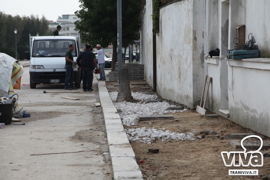 La cattiva condizione della pavimentazione e del relativo cordolo, oltre a rappresentare un pericoloso per i pedoni, stava causando infiltrazione d'acqua nell'immobile sito sul lungomare: il fatto è stato denunciato nelle scorse settimane dall'avvocato della proprietaria dello stabile, con una nota formale protocollata nel mese di agosto. I lavori, che oltre alla sistemazione del marciapiede hanno riguardato il taglio delle radici e la potatura di alcuni alberi, sono stati affidati (come già scritto nei giorni scorsi) alla cooperativa sociale di Trani "Puglia ambiente service".