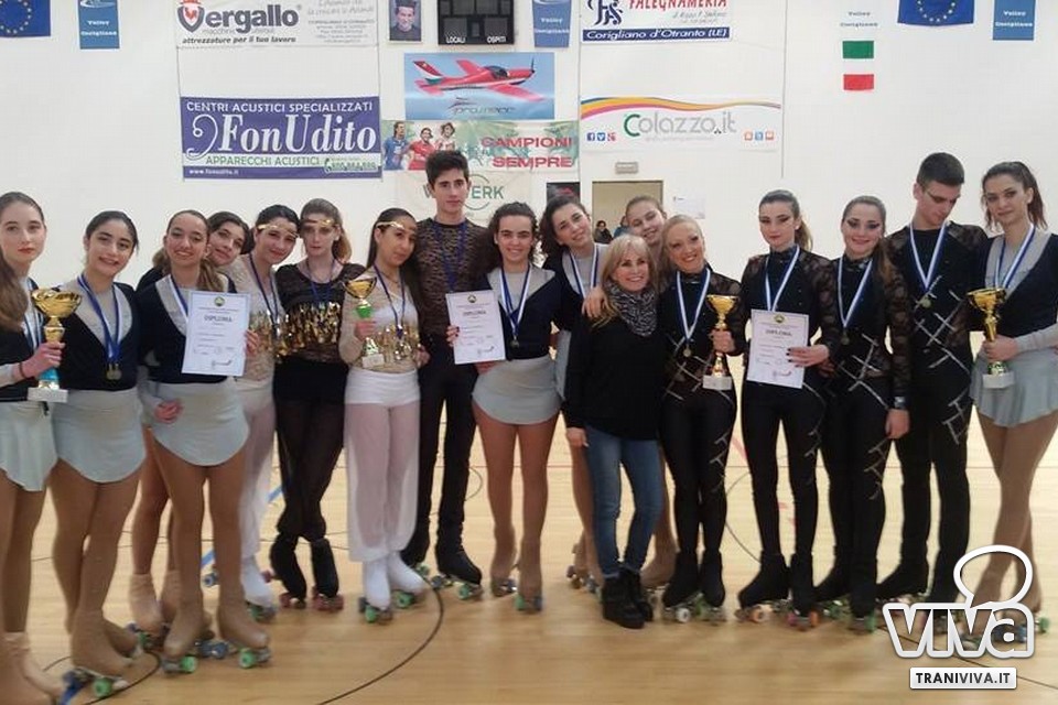 Si sono svolti a Corigliano d'Otranto (Lecce) i Campionati Regionali di pattinaggio: un vero spettacolo con gruppi e quartetti. Tra tutte le società partecipanti l'ASD Skating Trani di Marisa Mancini si è imposta con tre primi posti: primo posto per la categoria quartetti, primo posto per la categoria quartetti divisione nazionale e primo posto per i quartetto jeunesse; secondo posto, invece, per il piccolo gruppo.