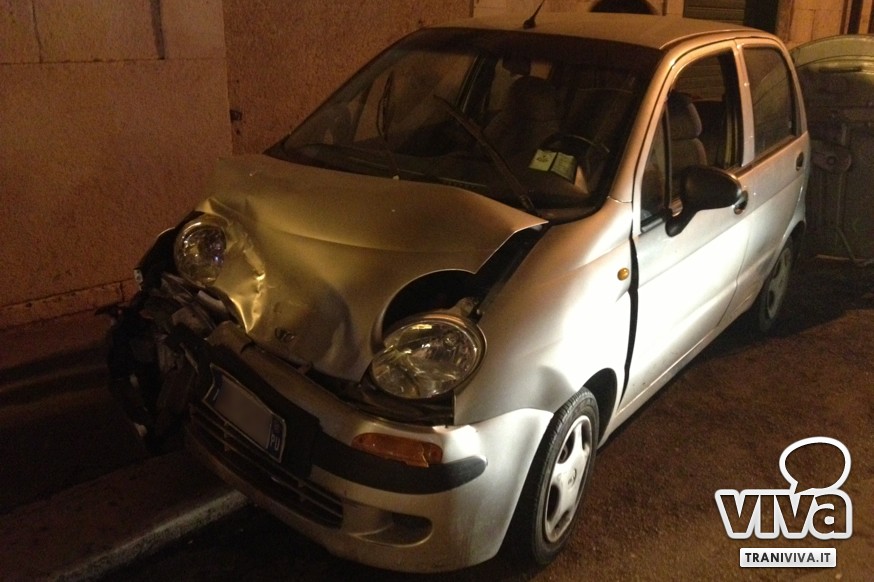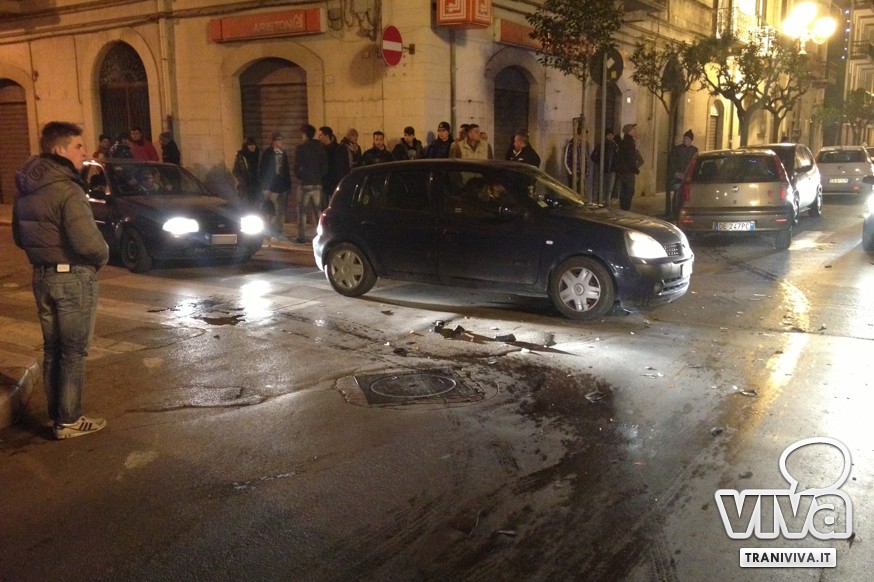 Due auto si sono scontrate in tarda serata su corso Vittorio Emanuele II in corrispondenza dell'incrocio con via Maiorano: secondo le testimonianze raccolte sul posto, una Fiat Punto che procedeva sul corso verso Barletta ha effettuato un sorpasso azzardato ed ha impattato con una Matiz che si immetteva sull'incrocio da via Maiorano.