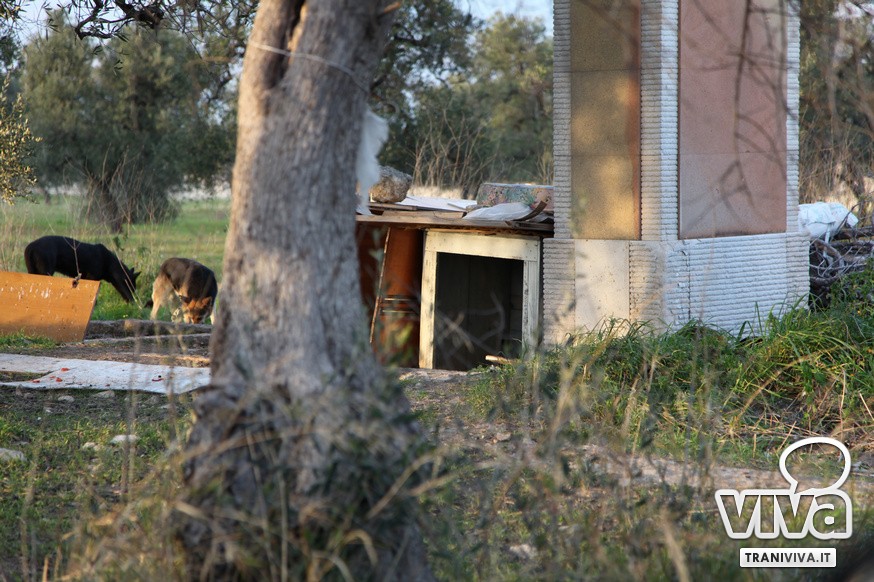 La zona è particolarmente popolata di cani che, spesso, si muovono in gruppo. Lungo la strada provinciale 188 (quella che porta sulla Andria – Bisceglie) è stato da tempo allestito un rifugio di fortuna (le foto sono state scattate un anno fa).