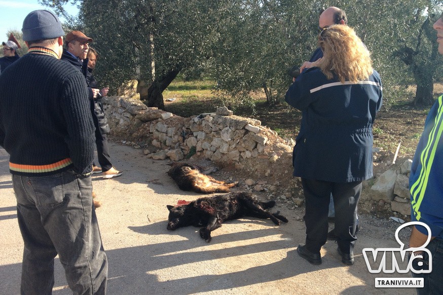 Questa mattina, invece, due cani di grossa taglia sono stati trovati morti in via Duchessa d'Andria, nei pressi della polveriera militare. Sul posto è intervenuta la Polizia Locale di Trani, la responsabile dell'associazione animalista Raffaella Merra, visibilmente scossa per quanto accaduto, e i veterinari della Asl. Secondo una prima ipotesi avanzata da quest'ultimi, i due cani potrebbero essere stati attaccati nella notte da un branco di randagi.