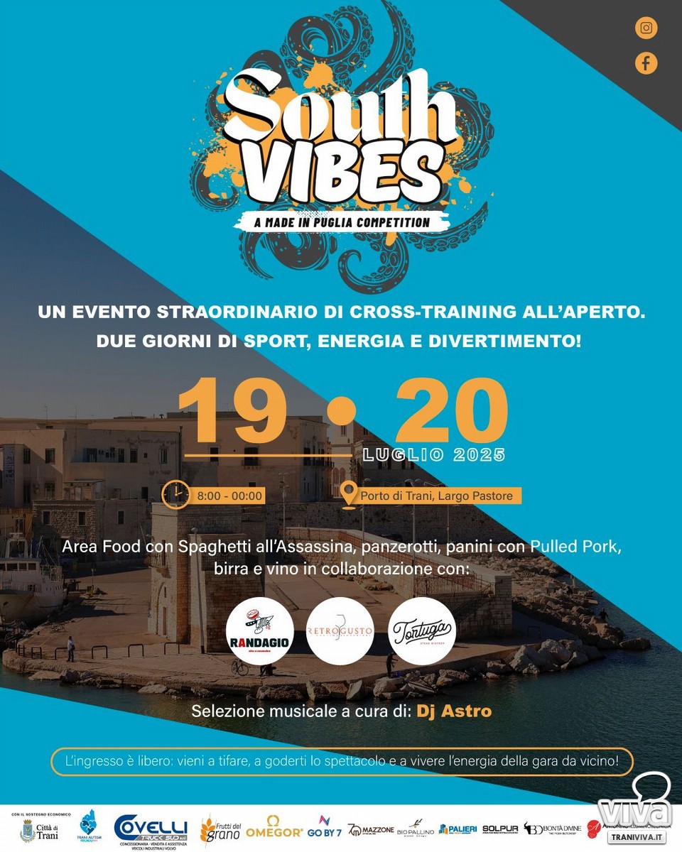 Il 19 e 20 luglio, dalle 9:00 a 00:00, il suggestivo Porto di Trani sarà il palcoscenico della prima edizione di South Vibes, un evento unico nel suo genere che promette di fondere sport, musica e sapori in un'atmosfera tutta pugliese.