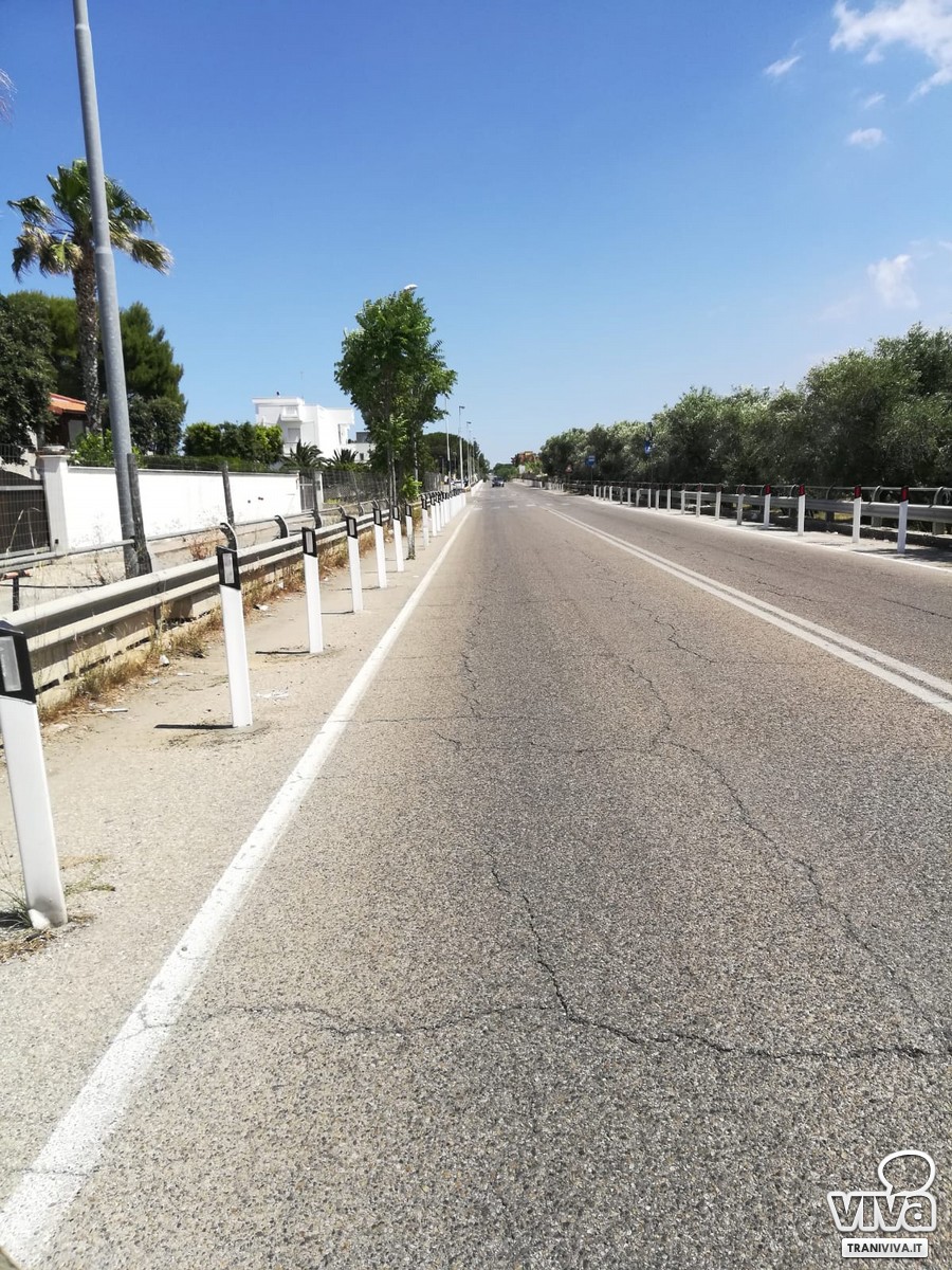 Su iniziativa degli assessorati al decoro urbano (Michele di Gregorio) e viabilità (Cecilia Di Lernia) lungo la statale che collega Trani a Bisceglie sono stati riapposti 100 segnalimiti parte dei quali in sostituzione dei precedenti, danneggiati. I paletti sono utili alla formazione di un corridoio per pedoni ed evitano la sosta delle auto sulla statale.