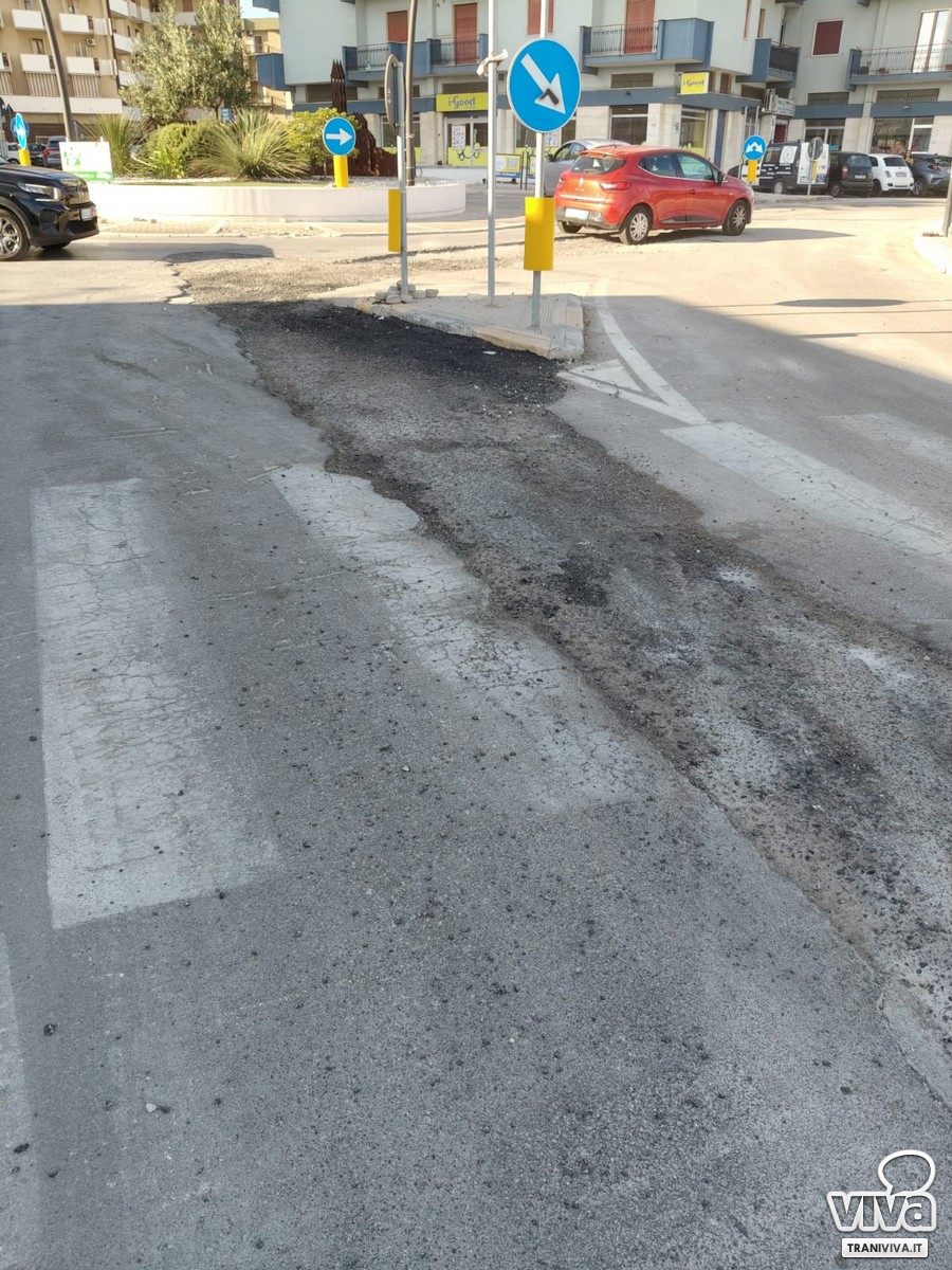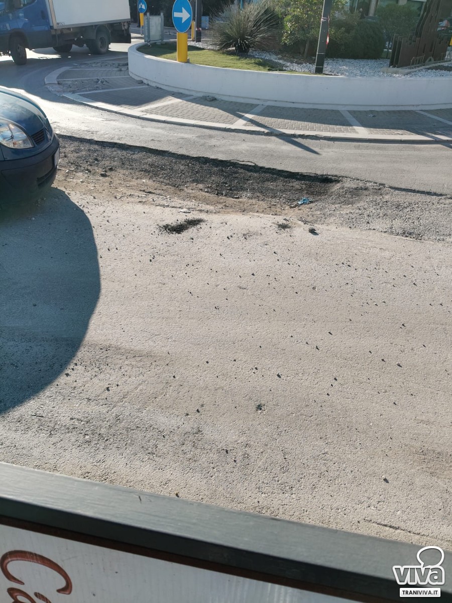 Nuove criticità nella viabilità cittadina. A seguito dei lavori, tuttora in corso, per la realizzazione dell'impianto di riciclo e riuso delle acque reflue, destinato ad irrigare le campagne, si registrano gravi danni alla sede stradale all'altezza della rotonda tra via Barletta e via Papa Giovanni XXIII.