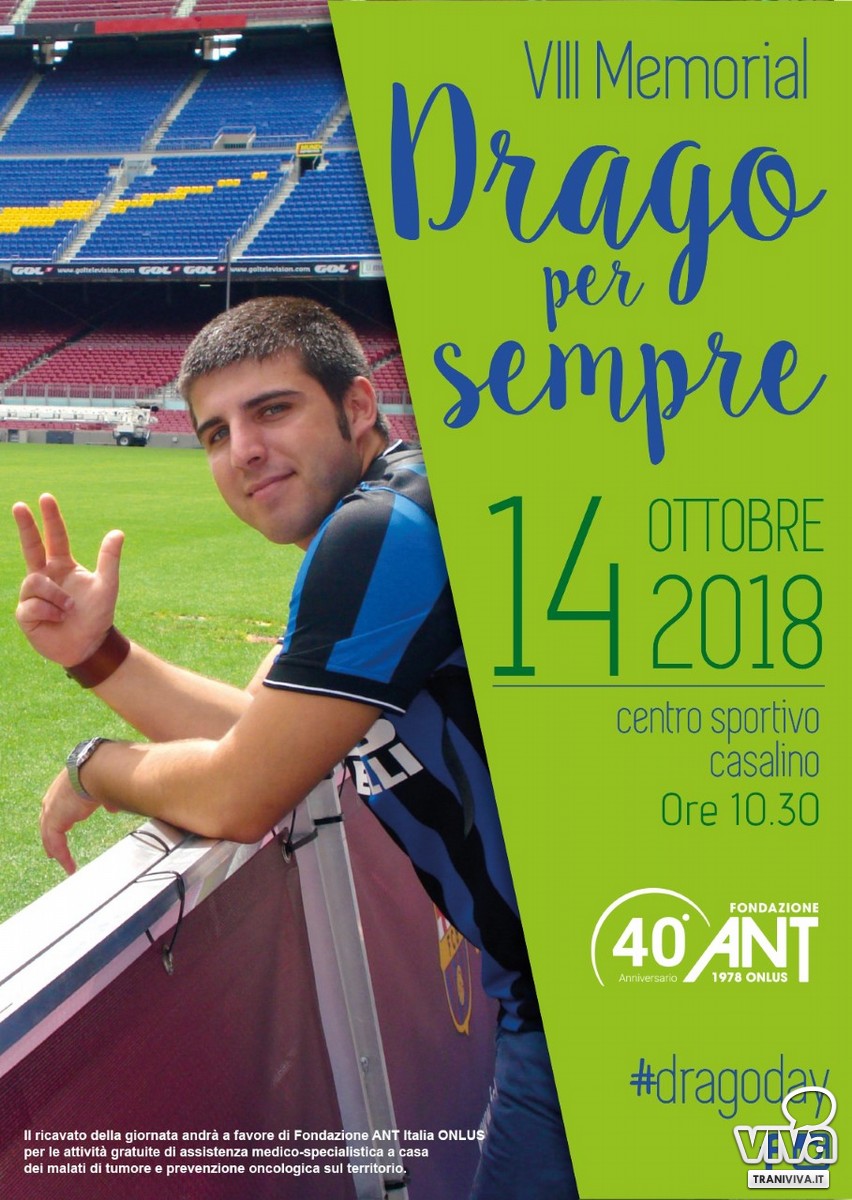 Si è svolta domenica 14 Ottobre 2018, presso il Centro Sportivo Casalino, l'ottava edizione del torneo di calcio in memoria di Antonio Dragonetti, venuto a mancare il 29 settembre del 2010 a causa di un tumore, all'età di soli 23 anni. A parteciparvi sono stati parenti, amici e conoscenti. L'edizione di quest'anno è stata ulteriormente impreziosita dalla presenza della "Fondazione Ant Italia Onlus", che da oltre quarant'anni offre assistenza specialistica ai malati di tumore e prevenzione oncologica. Nunzio, fratello di Antonio e organizzatore dell'evento, ha fortemente voluto la loro partecipazione proprio per diffondere un messaggio di solidarietà a tutti coloro che vengono colpiti da questo "brutto male". Altro intento è stato quello di sensibilizzarne la prevenzione.