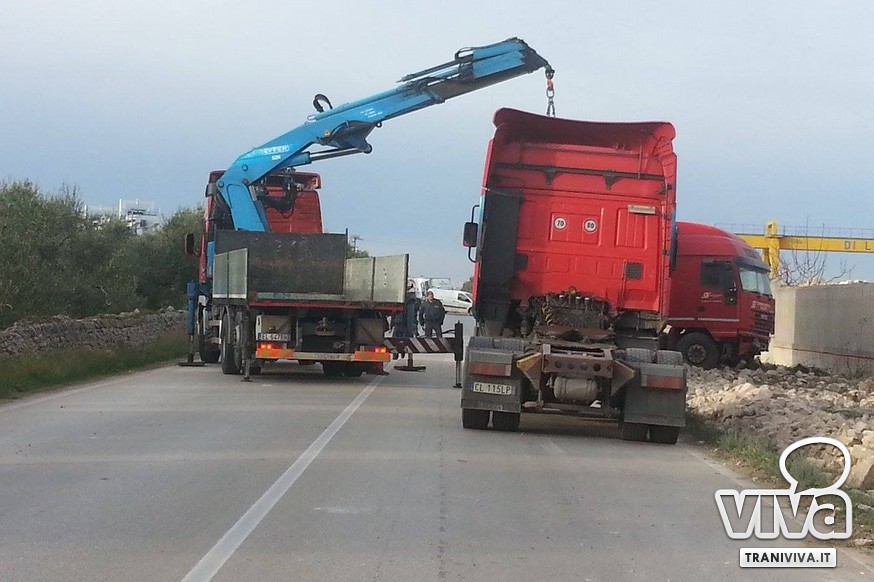 Tir fuori strada sulla Trani-Andria: è accaduto questa mattina