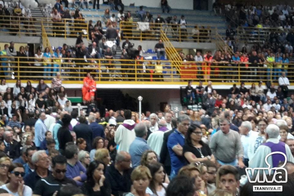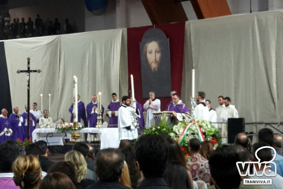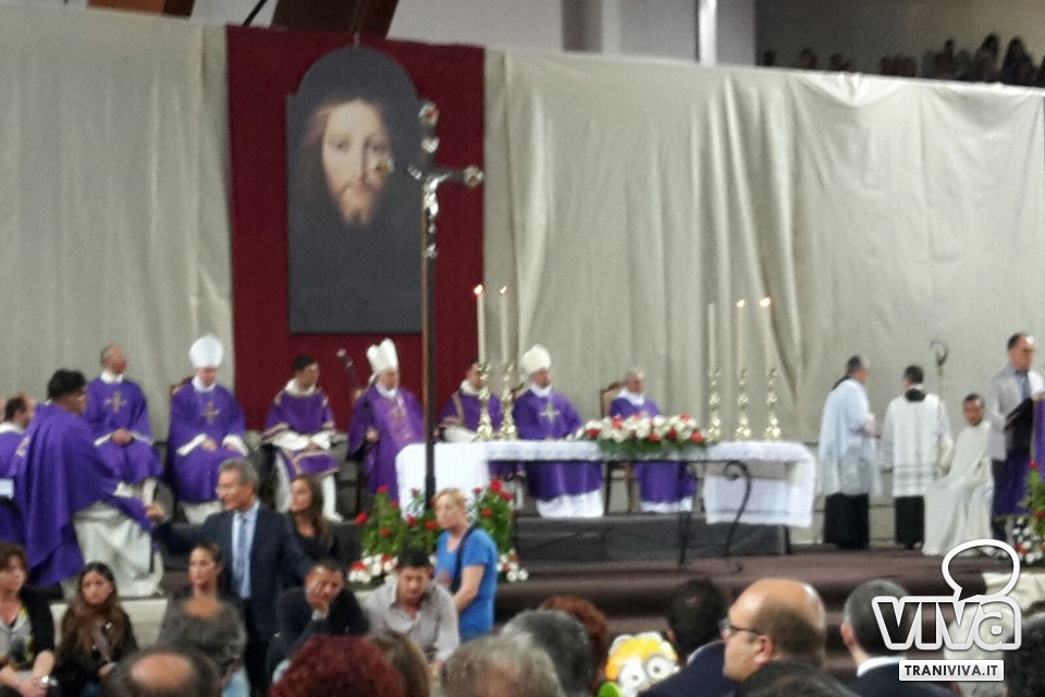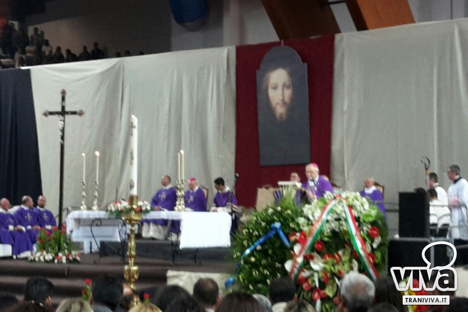 «Padre, padre che sei nei cieli, ti giunge in queste ore il grido di dolore di tanti tuoi figli». Così si è aperta l'omelia del vescovo di Andria, monsignor Luigi Mansi, nel giorno dei funerali solenni per le vittime dell'incidente ferroviario sulla tratta Andria-Corato. Paroli forti quelle usate dal vescovo nel Palasport di Andria gremito di gente, alla presenza delle autorità presenti a vario livello e titolo, tra cui il presidente della Repubblica Mattarella, la presidente della Camera Boldrini e il Ministro dei trasporti Delrio.