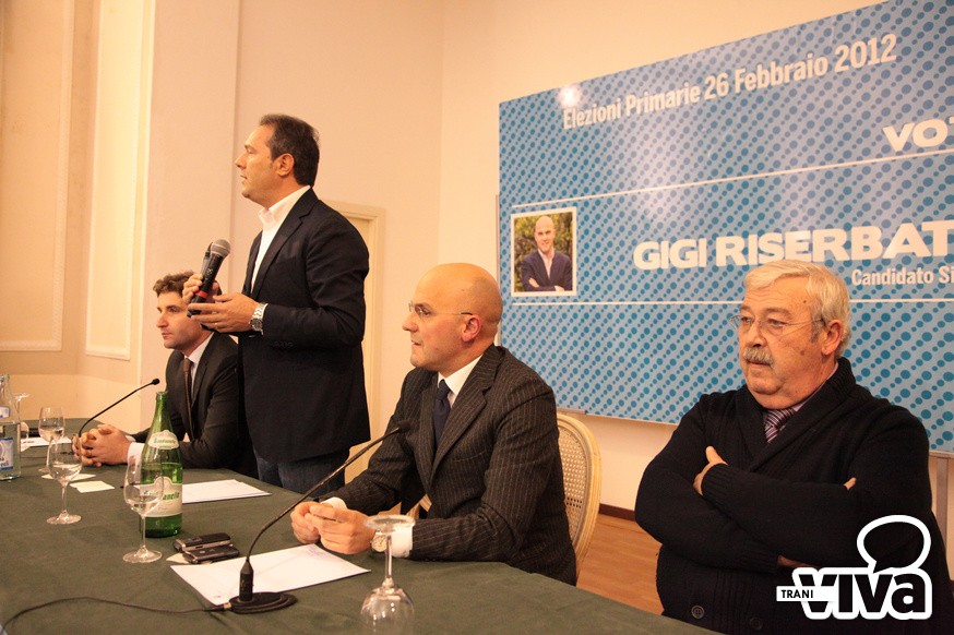 Sala piena all'hotel San Paolo, avvolta d'azzurro, colore scelto da Riserbato come sfondo della sua campagna elettorale. Una scelta non casuale. «L'azzurro è il colore del mare – dice Riserbato – ed è al mare, alla costa tranese che dedicherò fin da subito attenzione in caso di elezione a sindaco della città». Due i progetti su cui Riserbato è pronto ad impegnarsi: la risistemazione del tratto costiero che collega Trani a Barletta e la realizzazione del piano regolatore del centro storico. «Ho verificato la praticabilità di questi progetti confrontandomi anche con l'attuale sindaco. A fronte dei problemi di vincoli sul litorale fra Trani e Bisceglie, sarà fondamentale affrontare con decisione la risistemazione di un tratto di mare meraviglioso ma deturpato dalla presenza decennale di insediamenti industriali. Ripensare la viabilità, garantire degli accessi sicuri, per restituire alla collettività uno dei tratti più frequentati e belli della nostra costa». Per il piano del centro storico, Riserbato è convinto di poter produrre risultati nei primi sei mesi di governo.