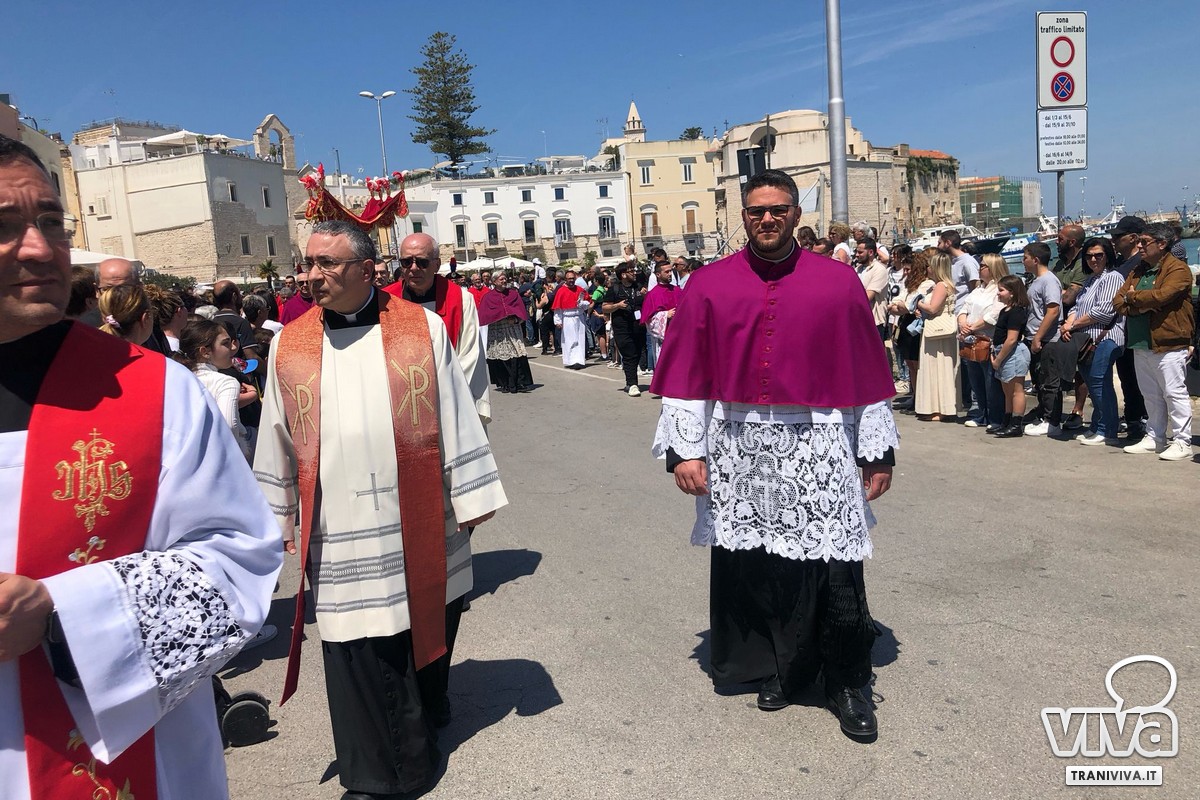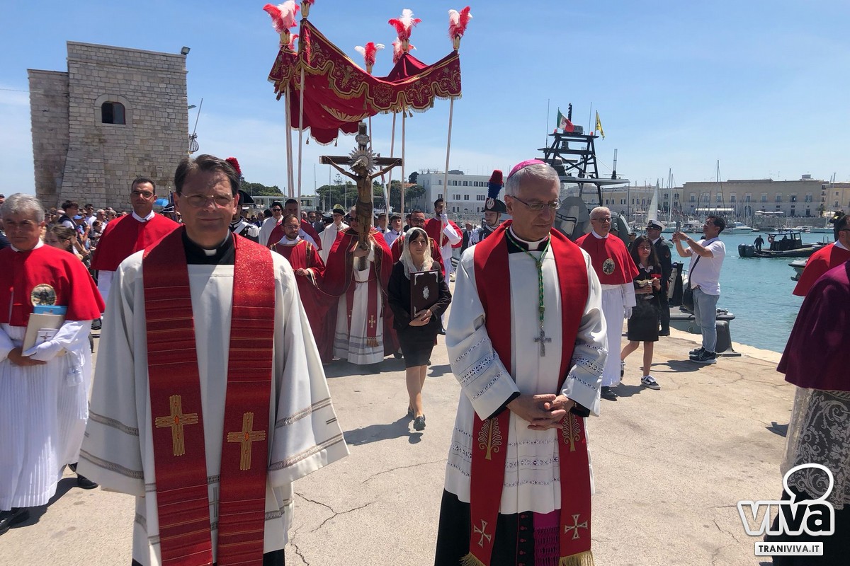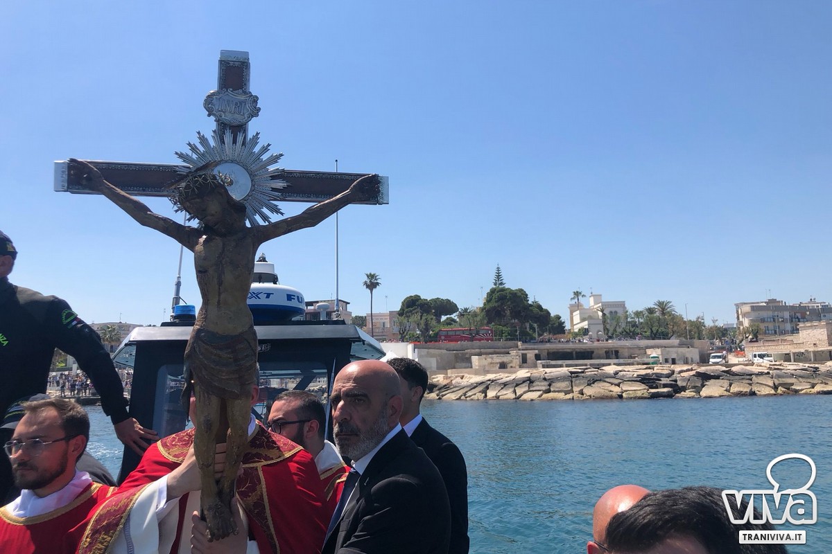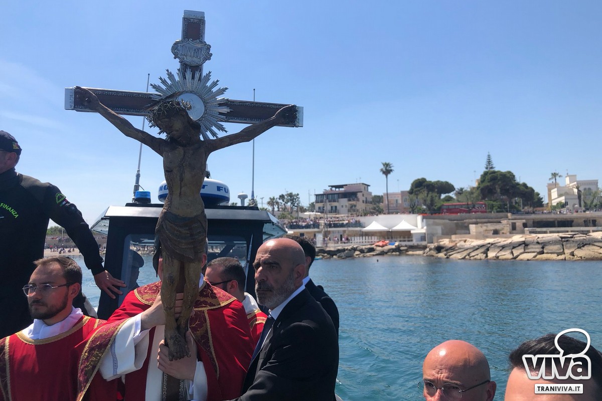 Una folla festante accoglie il Crocifisso di Colonna sul Porto di Trani. LE FOTO