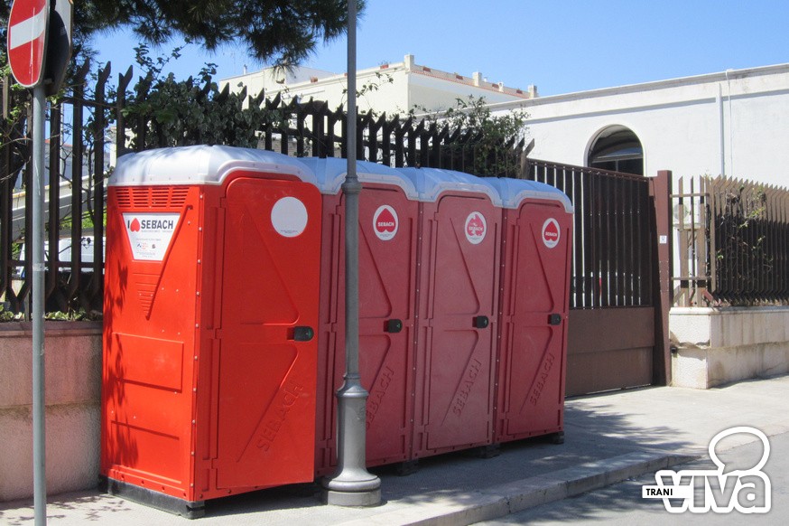 Otto bagni chimici noleggiati dall'Amiu e collocati in città fino alla fine di agosto. Su sollecitazione del sindaco Gigi Riserbato e dell'assessore all'ambente Giuseppe De Simone, l'azienda tranese ha provveduto questa mattina a collocare i bagni sul territorio comunale: due strutture sono state collocate alla seconda spiaggia, due invece sono state poste nei pressi di porta Vassalla e quattro sono state sistemate sul lungomare Chiarelli nei pressi dell'Amet per far fronte alle esigenze degli operatori ambulanti che raggiungeranno Trani in occasione della festa della Madonna del Carmine e della festa patronale. Non è da escludere che un paio possano essere spostati a Colonna negli altri giorni.