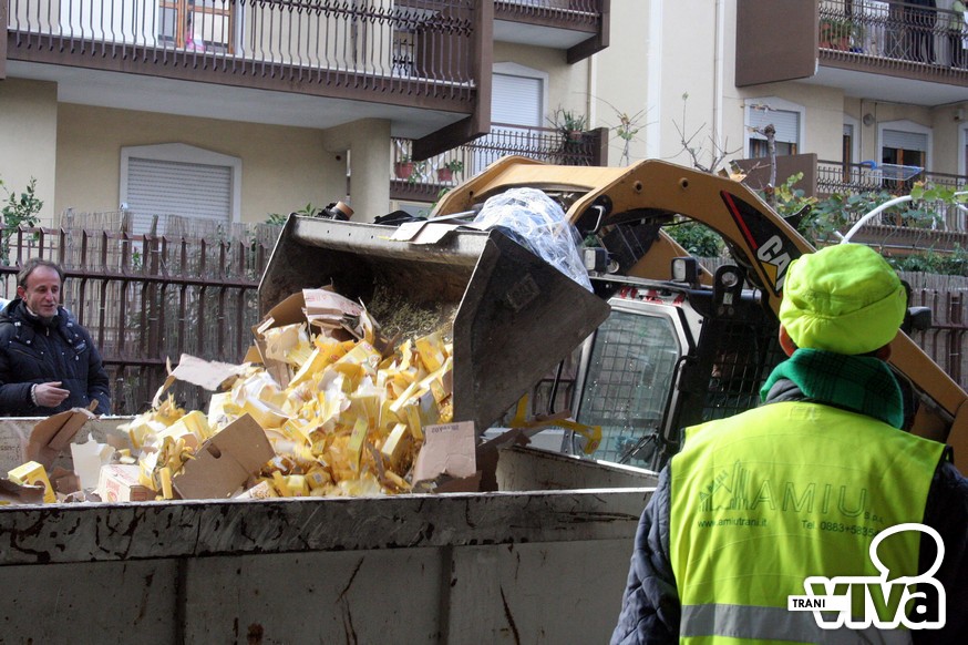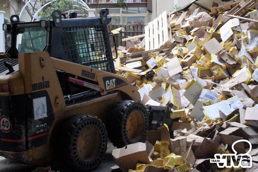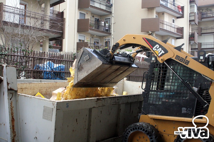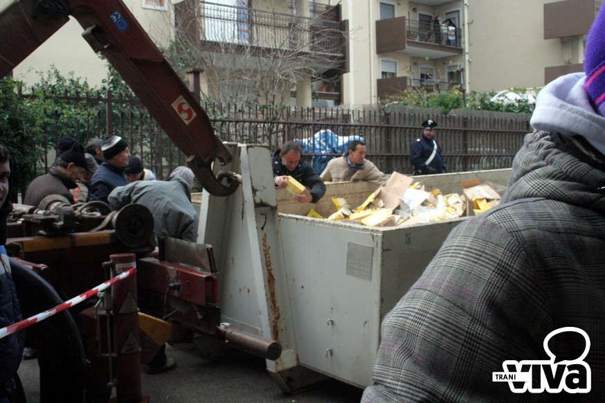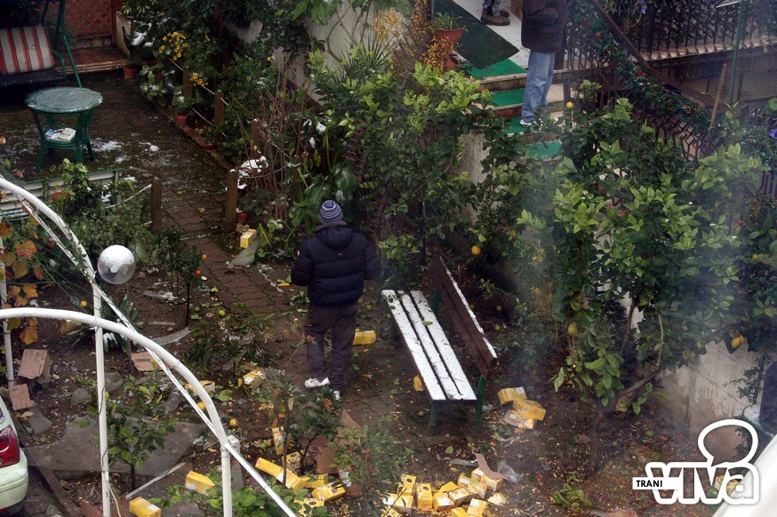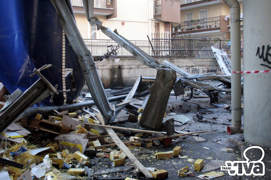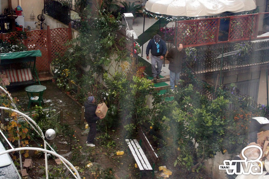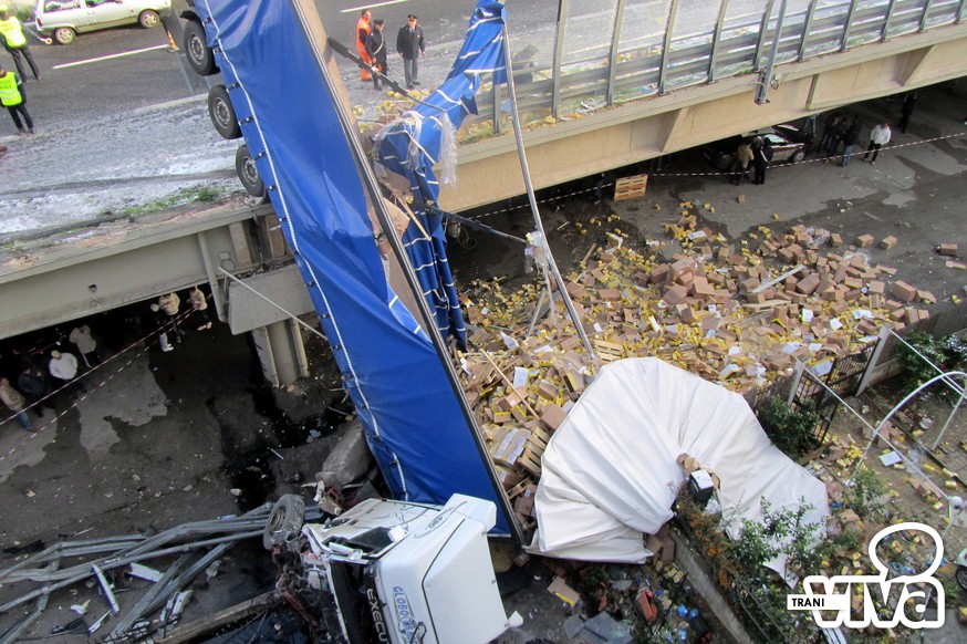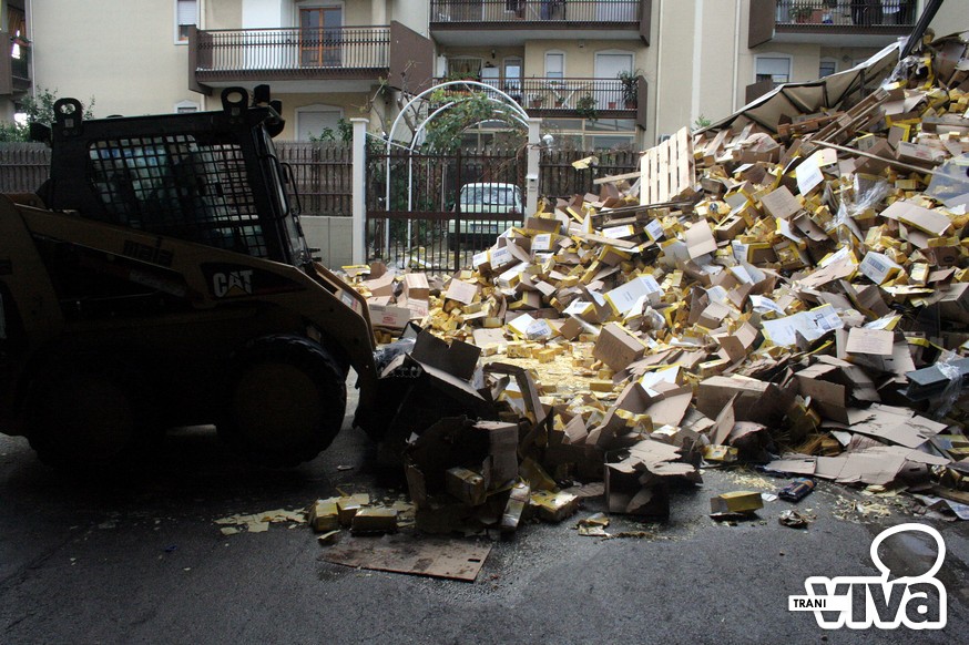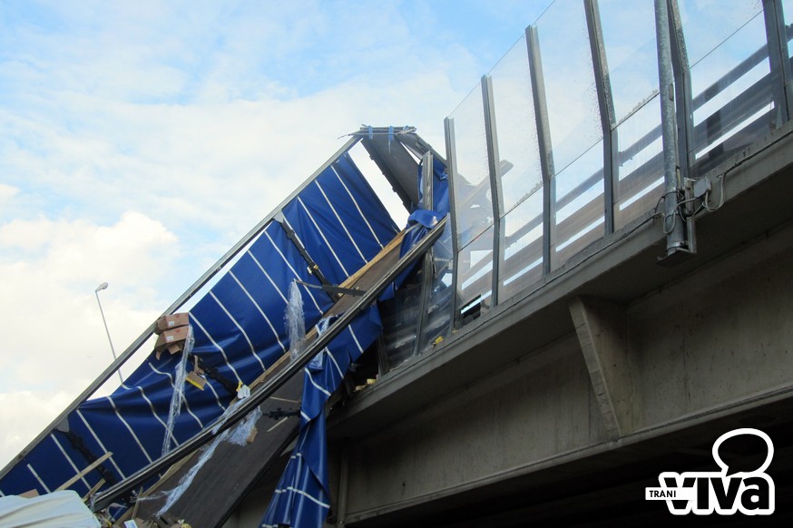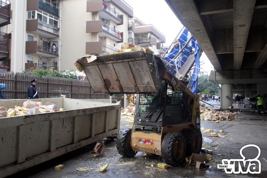 Un camion blu, contenente pasta, probabilmente a causa del manto stradale ghiacciato, ha sfondato il guard rail e le barriere anti rumore della statale 16 bis ed è rimasto in bilico per ore a strapiombo sulle abitazioni di via Cilea che si affacciano su via Superga. L'episodio si è verificato all'altezza di Trani centro, in direzione Bari.