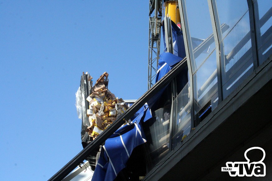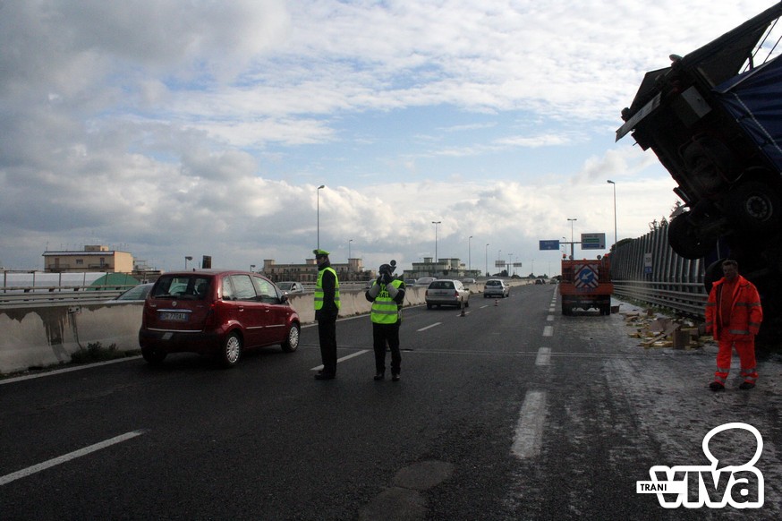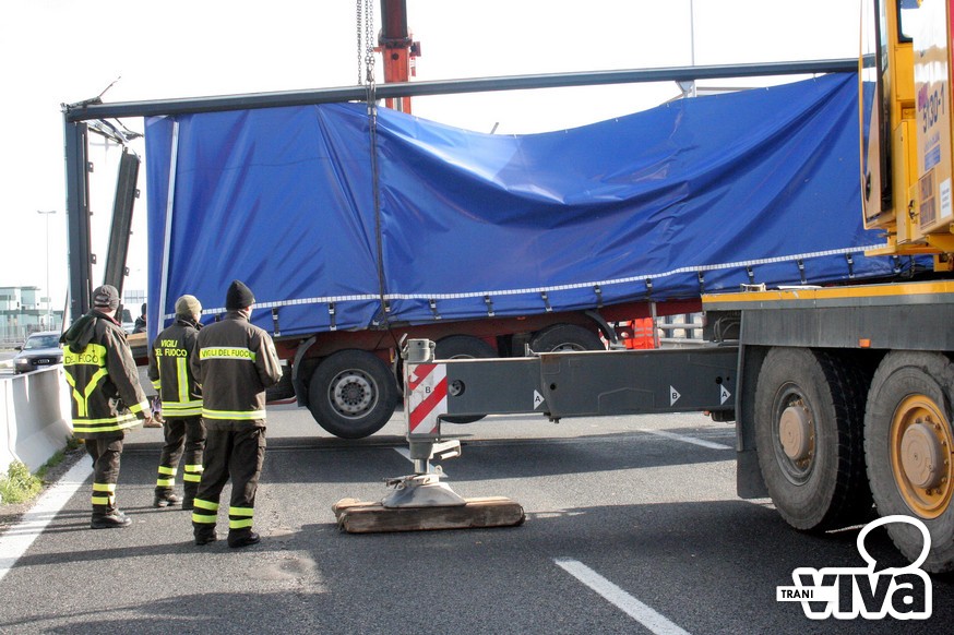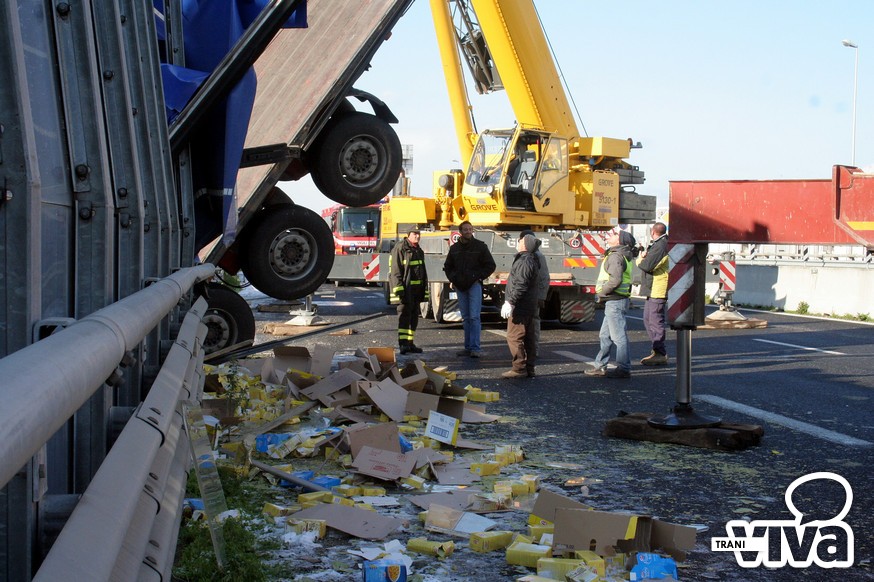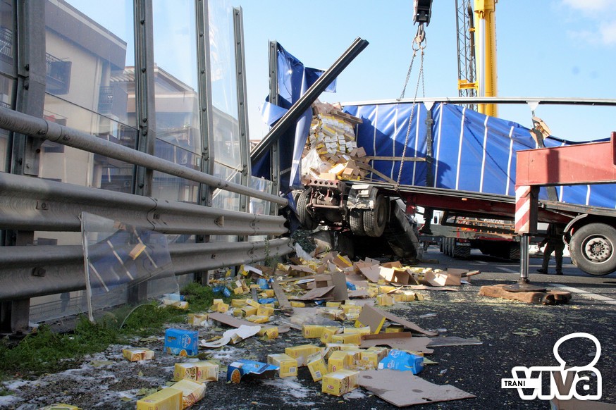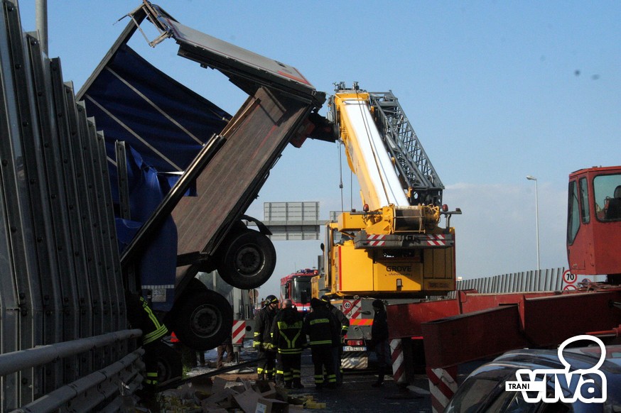 Il problema più impellente è stato quello di rimuovere i detriti ed il mezzo. Il tir della Barilla è stato adagiato sulla strada nel pomeriggio con l'ausilio di una gru. In via provvisoria, le barriere protettive distrutte sono state sostituite da barriere new jersey in plastica. Il traffico in direzione di Bari è stato ripristinato, mentre l'uscita Trani centro è rimasta chiusa per motivi di sicurezza.