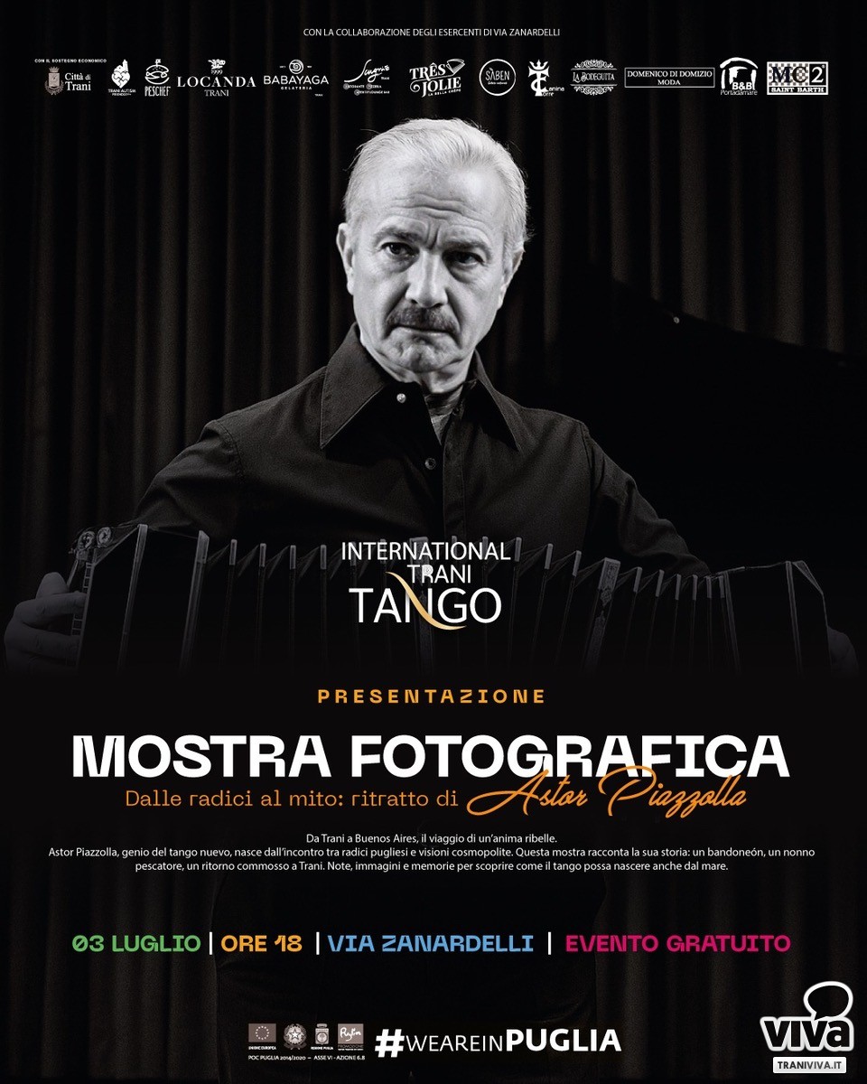 A pochi giorni dal via della XII edizione dell'International Trani Tango, la mostra permetterà a curiosi e appassionati di conoscere la storia incredibile del genio che ha rivoluzionato la storia del tango moderno inventando il tango nuevo. Libertango e Adios Nonino nascono anche dalla rocambolesca avventura vissuta a partire dal lungo viaggio della famiglia Piazzolla che da Trani, paese natio del nonno pescatore Pantaleone, andò a cercar fortuna in Sudamerica come milioni di altri italiani, che abbandonarono famiglia e affetti per tentare di vivere una vita migliore altrove.