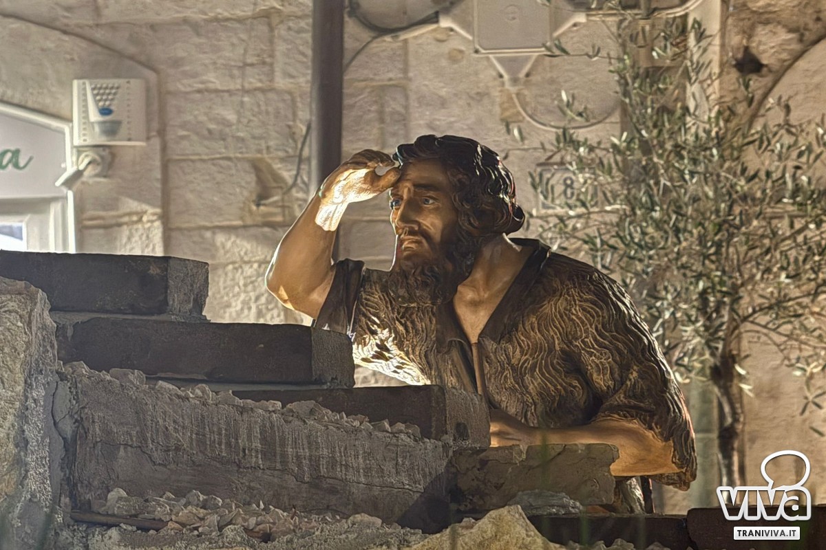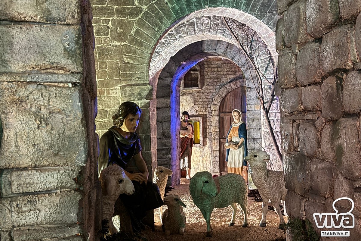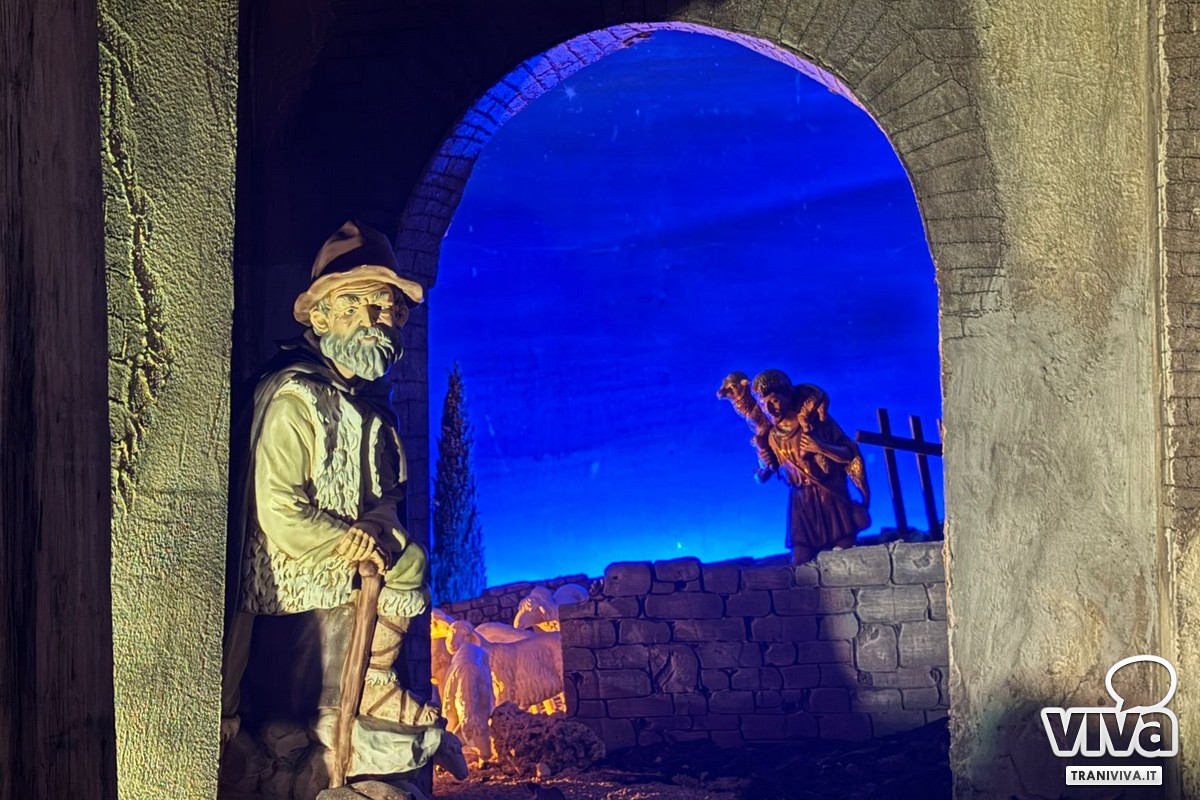 Il presepe di quest'anno colpisce per la sua verticalità. A spiegarne la genesi è l'ideatore e direttore artistico Carlo Scarcella: «Quest'anno la scenografia si sviluppa in altezza, fino a raggiungere i 5 metri. Si parte dal piano di calpestio, passando per la Natività a un livello intermedio, fino alla sommità dove abbiamo riprodotto la chiesa di Craco, la città fantasma della Basilicata». Non una scelta puramente estetica, ma teologica: la struttura simboleggia l'aspirazione dell'umanità verso la "Betlemme celeste". Scarcella ha voluto ricordare come dietro l'opera finale ci siano «mesi di lavoro, passione e pazienza», ringraziando le maestranze che hanno trasformato l'idea in realtà, lavorando "mattone su mattone". La cerimonia è stata anche l'occasione per ricordare le radici di questa usanza. Come recita la targa apposta presso l'installazione, la tradizione del presepe cittadino risale alla seconda metà degli anni Sessanta. Per oltre vent'anni, l'anima di questo allestimento è stato il compianto prof. Aurelio Carella. Sebbene dopo la sua scomparsa si siano avvicendati diversi autori, il presepe comunale rimane un «elemento identificativo del Natale cittadino», sopravvivendo nel luogo simbolo che ha ospitato quasi tutte le rappresentazioni artistiche di Trani.