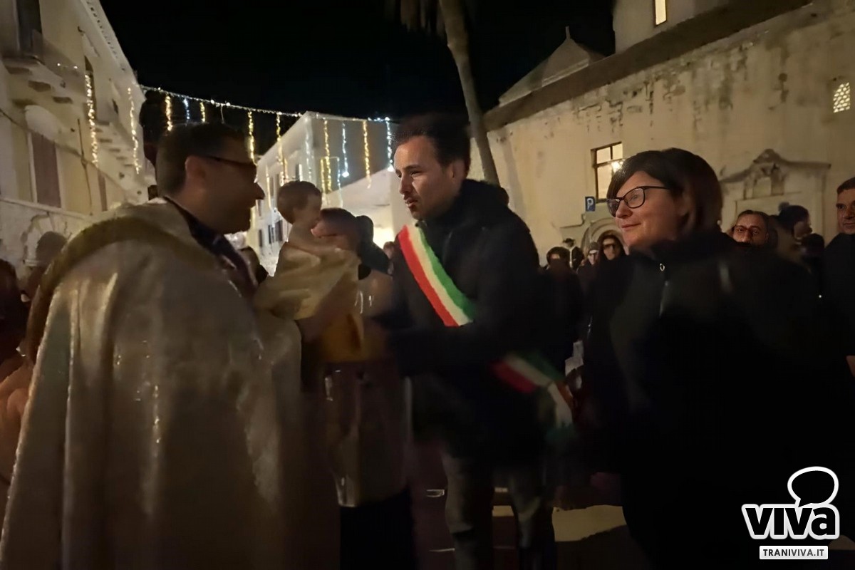È un rito che si rinnova, un gesto semplice ma carico di significati che unisce la comunità tranese nella notte più santa dell'anno. Lo scorso 24 dicembre, nella cornice di Piazza Libertà, si è tenuta la tradizionale cerimonia di deposizione del "Bambinello" all'interno del presepe cittadino. Un momento di raccoglimento che intreccia la fede, rappresentata dalla benedizione impartita da Don Giuseppe Mazzilli, con l'arte e la memoria storica della città.
