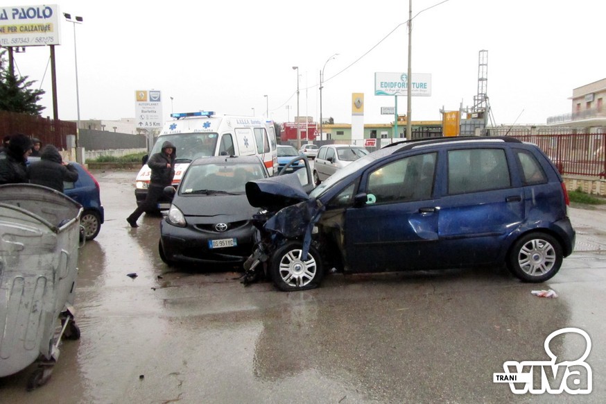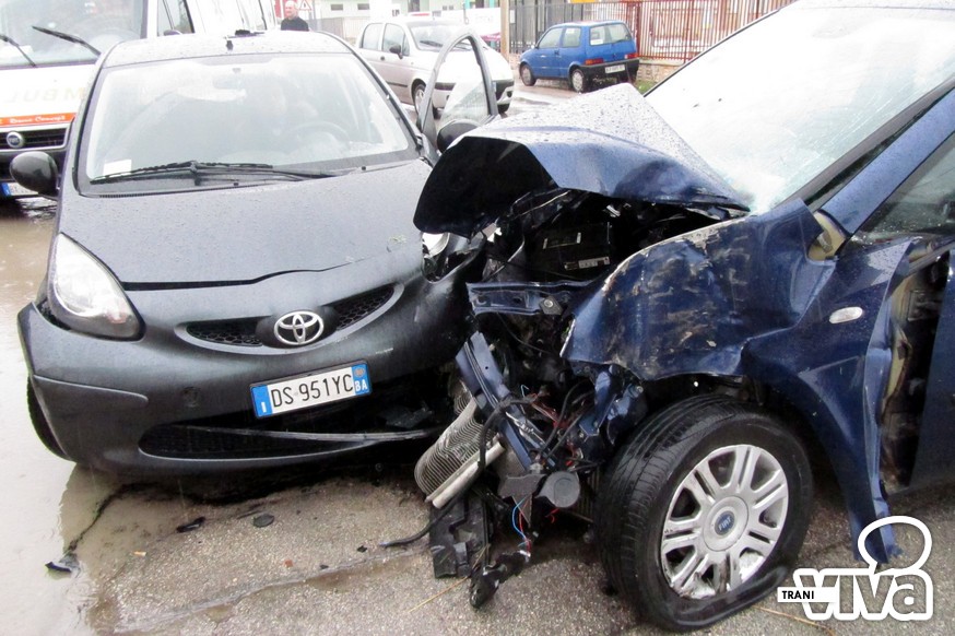 Un violento incidente stradale si è verificato poco dopo le 13 in via Barletta, qualche chilometro dopo il cimitero di Trani. Coinvolte due macchine, una Toyota Aygo nera (diretta verso Trani) ed una Fiat Idea (diretta verso Barletta). Per cause ancora da accertare le due vetture si sono scontrate frontalmente.