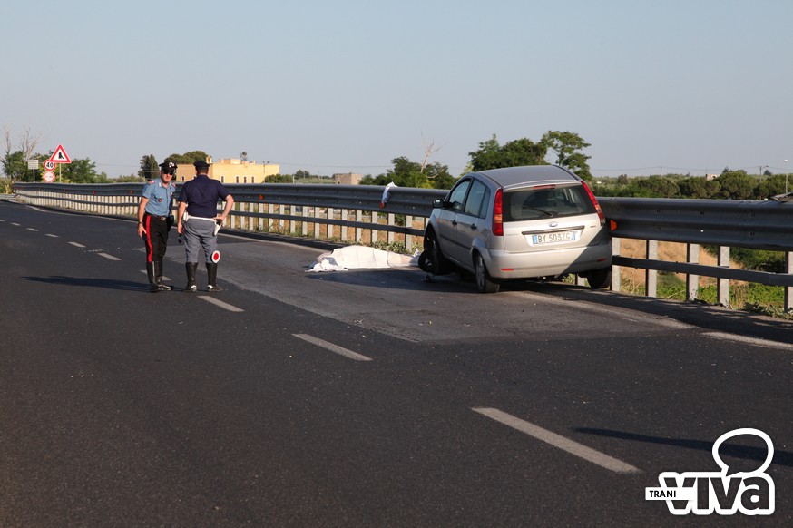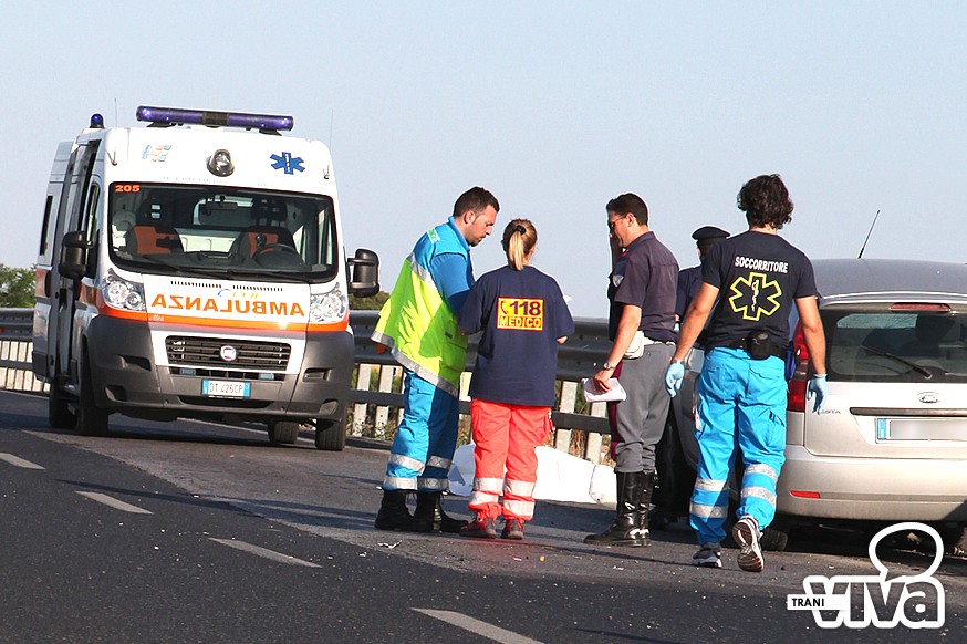 Drammatico incidente mortale questo pomeriggio sulla statale 16 bis, nei pressi dello svincolo di Trani sud, in direzione Bari. Un'auto (una Ford fiesta) guidata da una signora di Trani (ma residente a Bisceglie) ha travolto a tutta velocità uno scooter Honda a bordo del quale viaggiava un uomo di Trani di 57 anni, Domenico Riccardi.