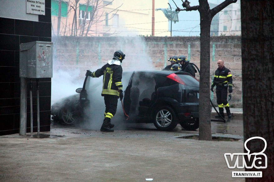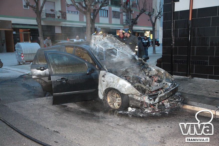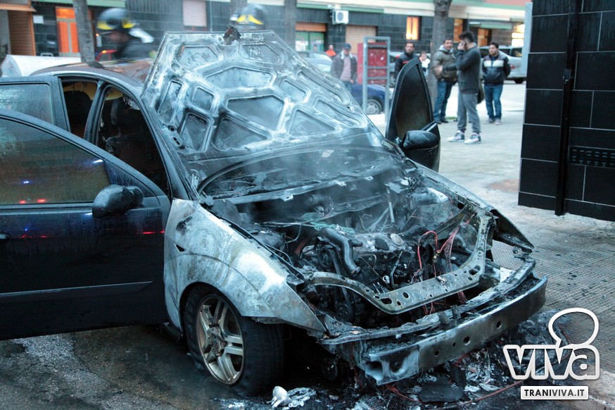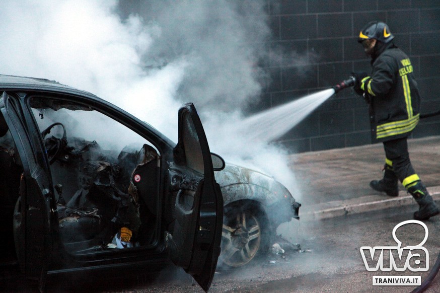 Auto in fiamme in via Maiorano, ad angolo con via Di Terlizzi. Un vettura in sosta (una Ford focus) ha preso fuoco nel giro di pochissimi minuti. Sul posto sono giunti i Vigili del fuoco da Barletta, ma per il mezzo c'era ben poco da fare. Non vi erano altre auto parcheggiate nelle vicinanze. A scatenare l'incendio un fenomeno di autocombustione. Al momento dell'incendio non era presente il proprietario.