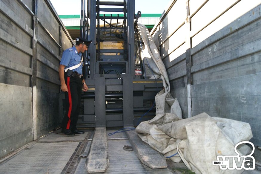 La macchina operatrice del valore di circa 80mila euro (trasportata con documento di viaggio contraffatto) è risultata rubata il 30 agosto 2012 a Bari ai danni di una società del capoluogo. I veicoli così sono stati sequestrati mentre il 50enne, su disposizione della Procura della Repubblica di Trani, è stato associato presso la casa circondariale del luogo.