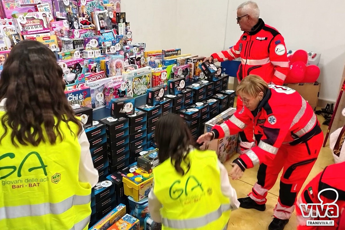 I numeri raccontano il successo dell'iniziativa: 6.000 giocattoli raccolti complessivamente, grazie a una rete solidale attiva da settimane. Una prima raccolta si è svolta lo scorso 30 novembre presso il punto vendita "Giodicart" a Trani, seguita da un presidio fisso al circolo ACLI e dalle numerose donazioni arrivate direttamente durante la serata. A questi si aggiungono gift card Amazon, buoni spesa e carburante, trucchi e consolle, pensati per ragazzi di tutte le età e per le loro famiglie.