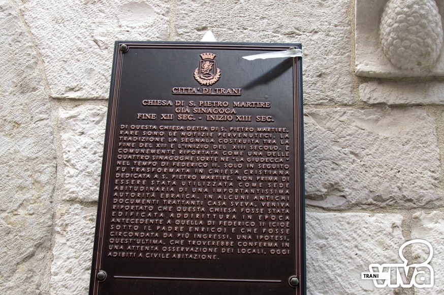 Dopo San Leonardo, è in vendita anche la quarta ed ultima sinagoga presente sul territorio di Trani. Un cartello «vendesi» è spuntato anche sulla porta del sottano in cui c'era la chiesa di San Pietro Martire, già sinagoga.