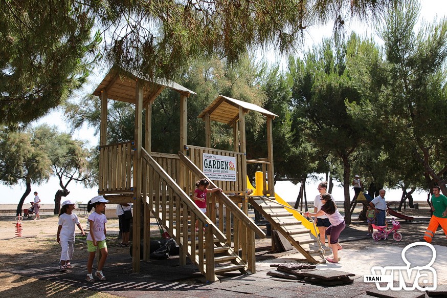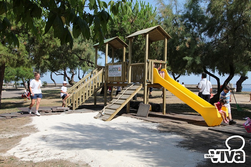 Nel parco giochi della villa comunale di Trani tornano le giostrine. Il merito è di un imprenditore locale, Giuseppe Centrone, titolare di un'azienda che commercializza articoli di arredamento per giardini e ville. Centrone ha donato una torretta Tilly ed ha provveduto alla risistemazione dell'altalena già esistente con dei nuovi seggiolini.