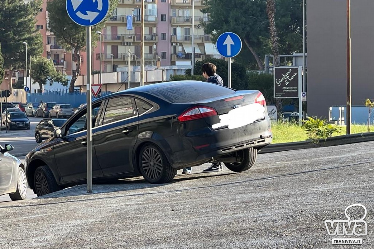 Troppa fretta verso il pranzo di Natale? Automobile "incagliata" sulla rotonda di via Istria