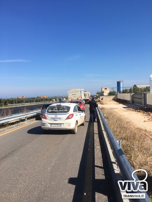 Disagi nella tarda mattinata di oggi sulla complanare Trani-Andria, sulla quale è smistato tutto il traffico verso la città federiciana a causa dei lavori in corso sulla carreggiata principale per il raddoppio delle corsie. Tutti i mezzi sono rimasti bloccati per più di mezz'ora a causa di troppi camion e tir in transito sulla strada. I mezzi sono rimasti incollonati a lungo, con una quasi paralisi della circolazione.